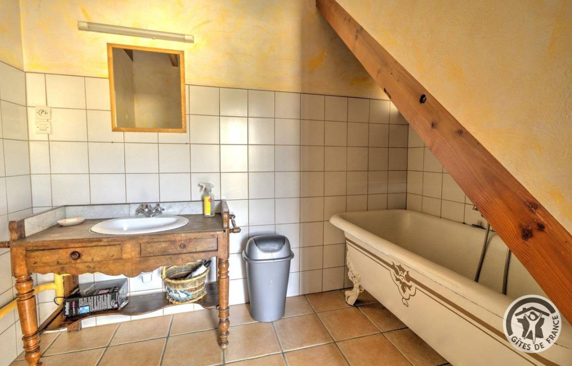 „Gite choisi pour 2 nuits faute de chambres d'hôtes. Au calme dans un cadre verdoyant. Personne ayant du mal à se déplacer s'abstenir: Des marchés pour arriver au gîte, puis pour monter à la cuisine et encore des marches pour accéder aux 2 lits simples, sans compter la baignoire assez haute à enjamber. En dehors de ça, le gîte est fonctionnel et le propriétaire sympathique.“