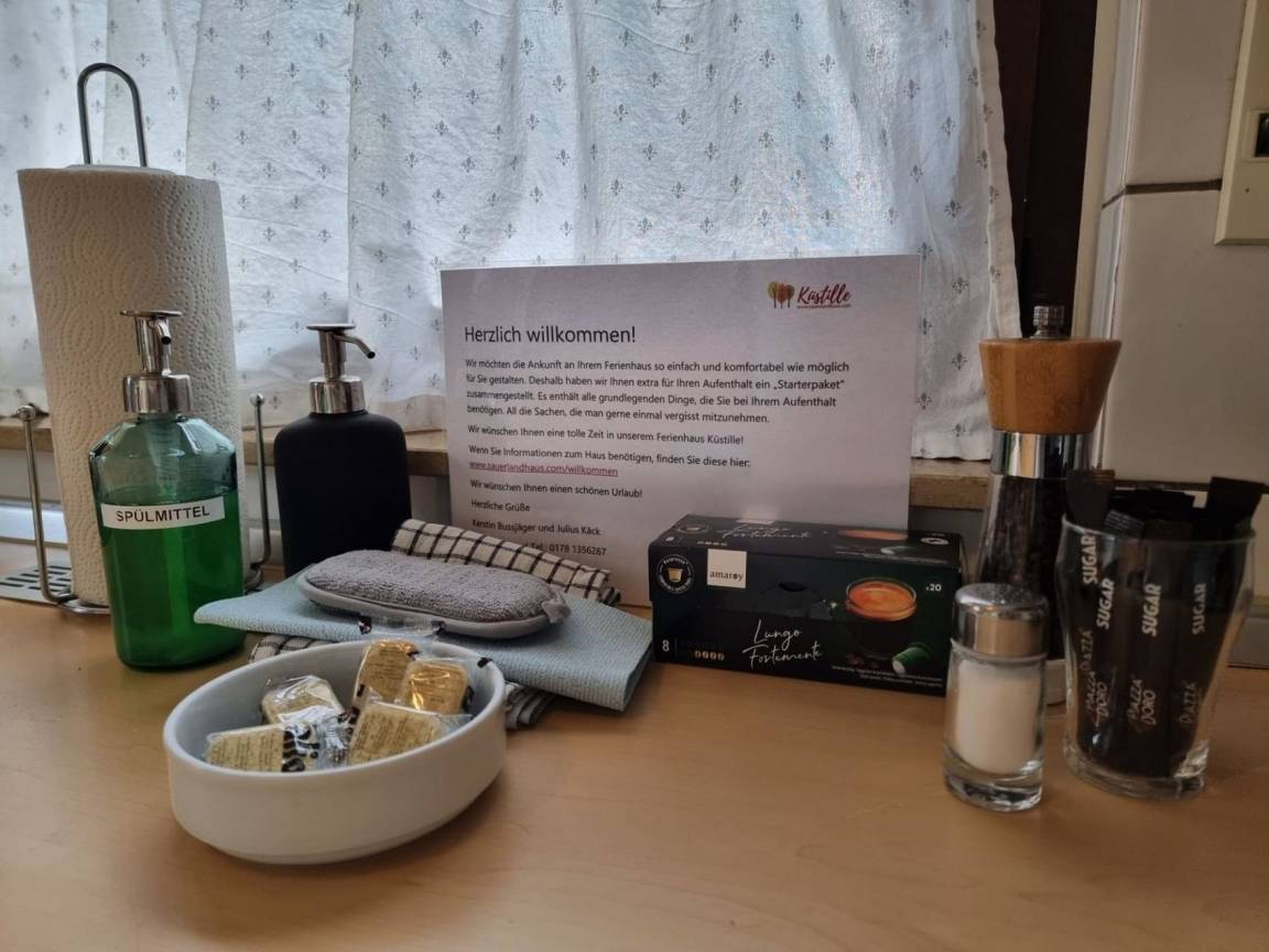 In einzigartiger Lage liegt unser Domizil am Ortsrand von Medebach-Küstelberg, ganz in der Nähe von Winterberg. Es bietet mit seinem geräumigen Ess- und Wohnbereich viel Raum für gesellige Stunden mit Freunden. Ausgestattet mit sechs gemütlichen Schlafzimmern mit insgesamt 13 Schlafplätzen und einem großen Garten ist unser Ferienhaus Küstille perfekt für einen Urlaub mit einer Gruppe geeignet. Die Badezimmer sind neu renoviert und mit einer ebenerdigen Dusche und einem Whirlpool ausgestattet. Einmalig ist der Blick vom Garten ins Tal mit wunderschönem Sonnenuntergang. Für Kinder bietet die Umgebung rund ums Haus, der benachbarten Spielplatz und der Sportplatz, genug Raum zum austoben. Auch Hunde sind uns herzlich Willkommen.
