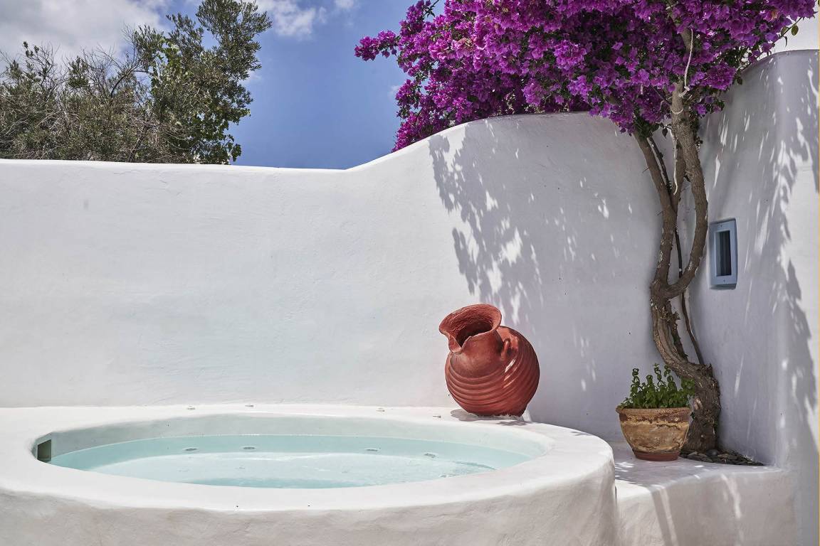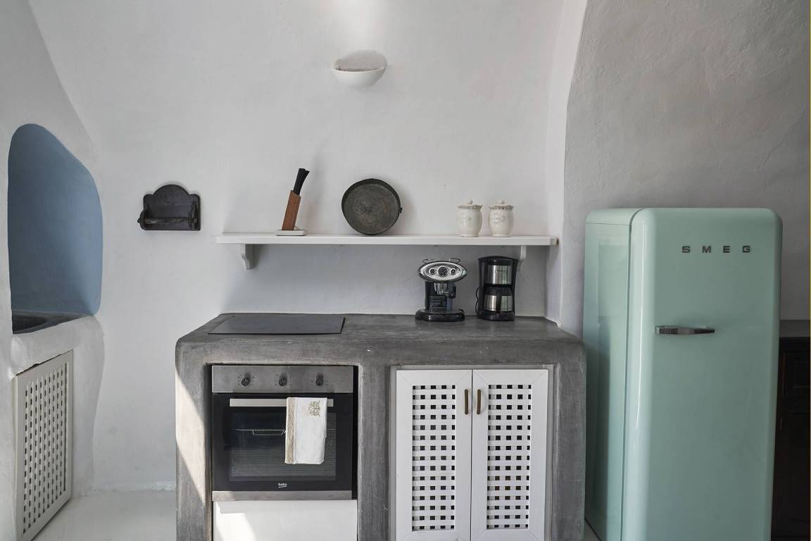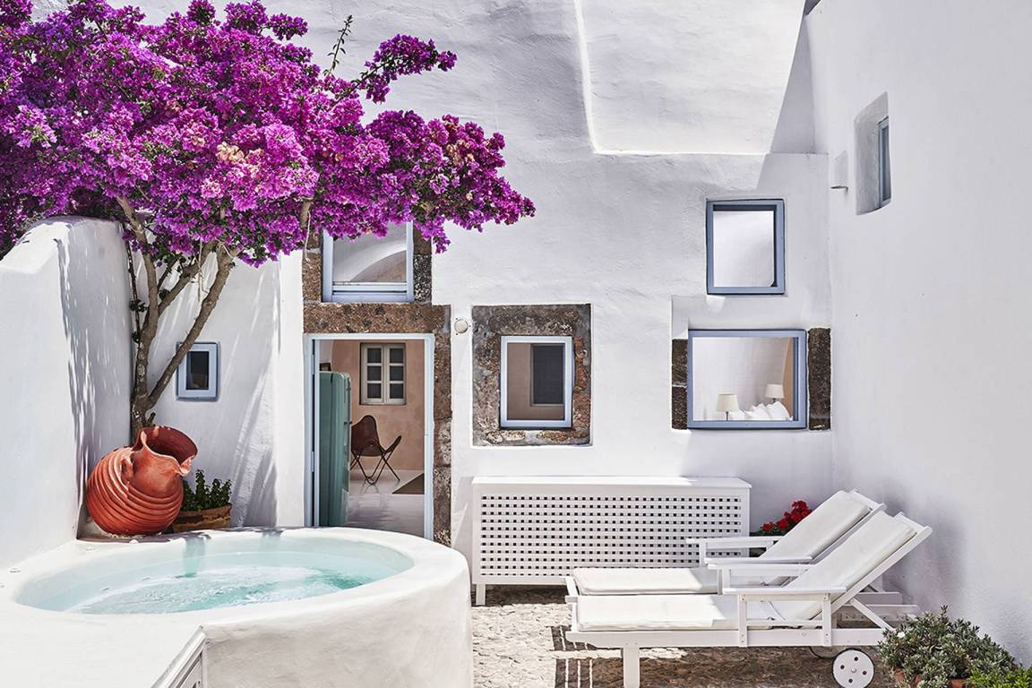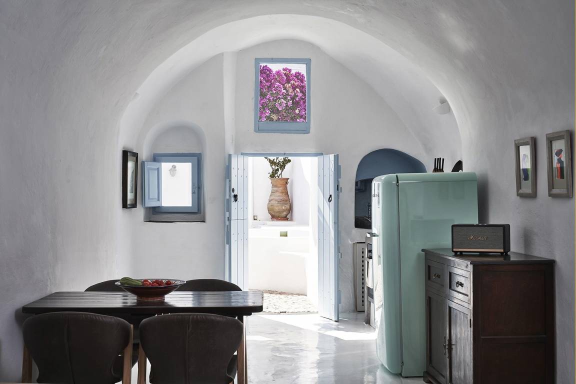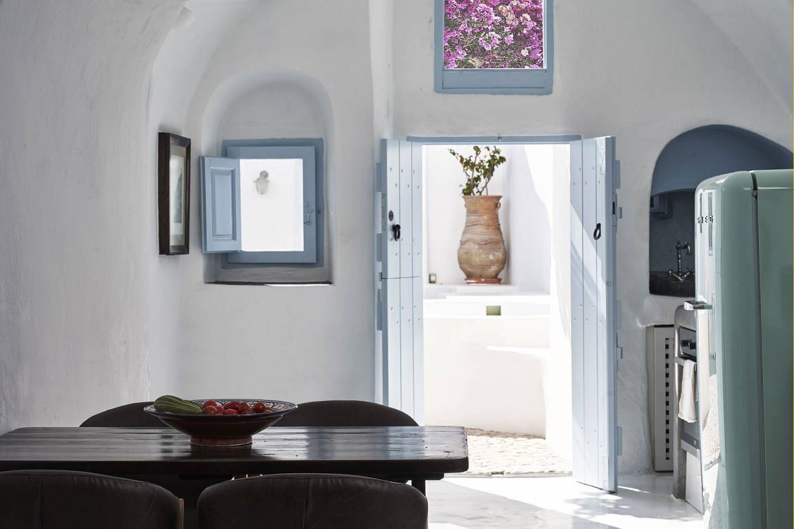 Die Villa liegt zentral im Dorf Megalochori auf Santorini.