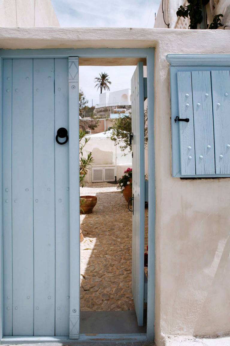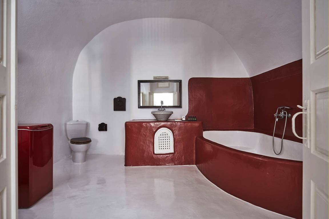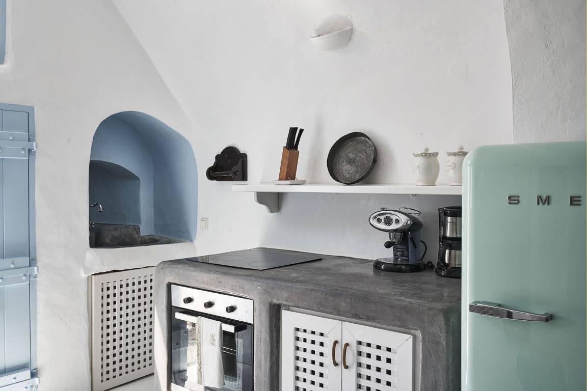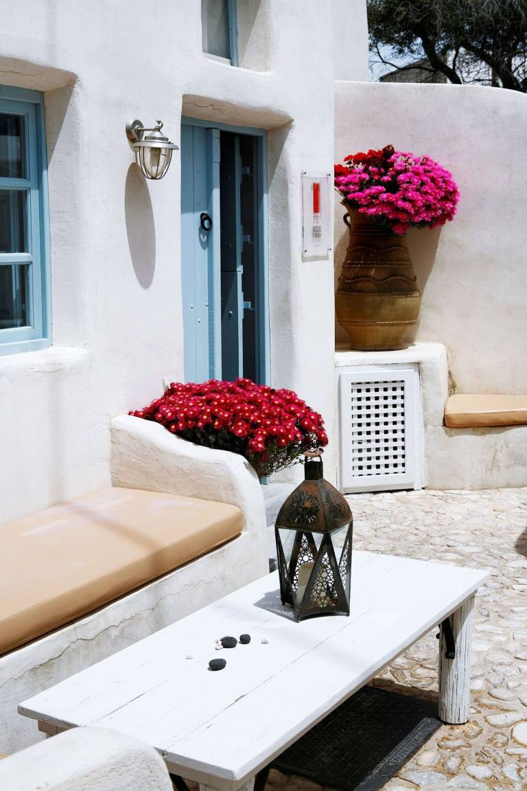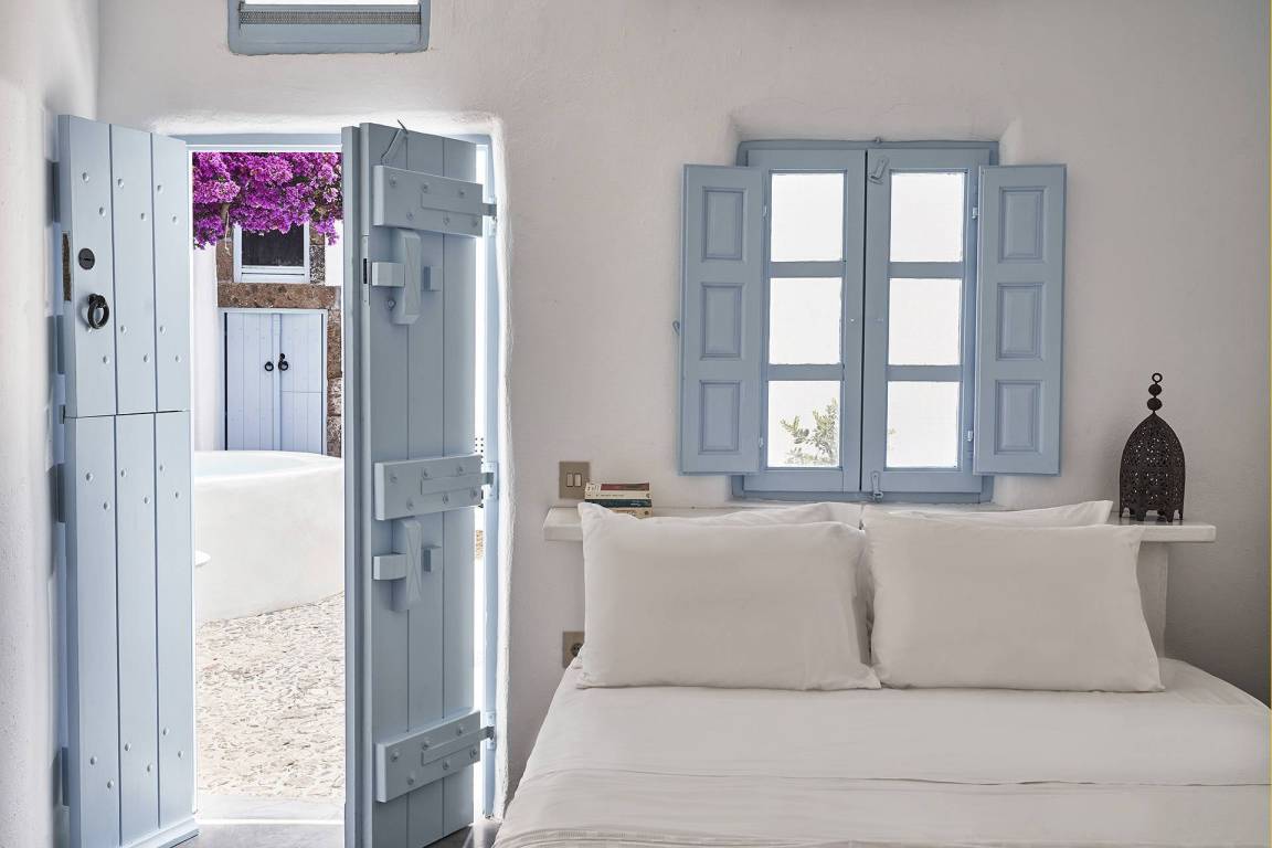 Die Villa liegt zentral im Dorf Megalochori auf Santorini.