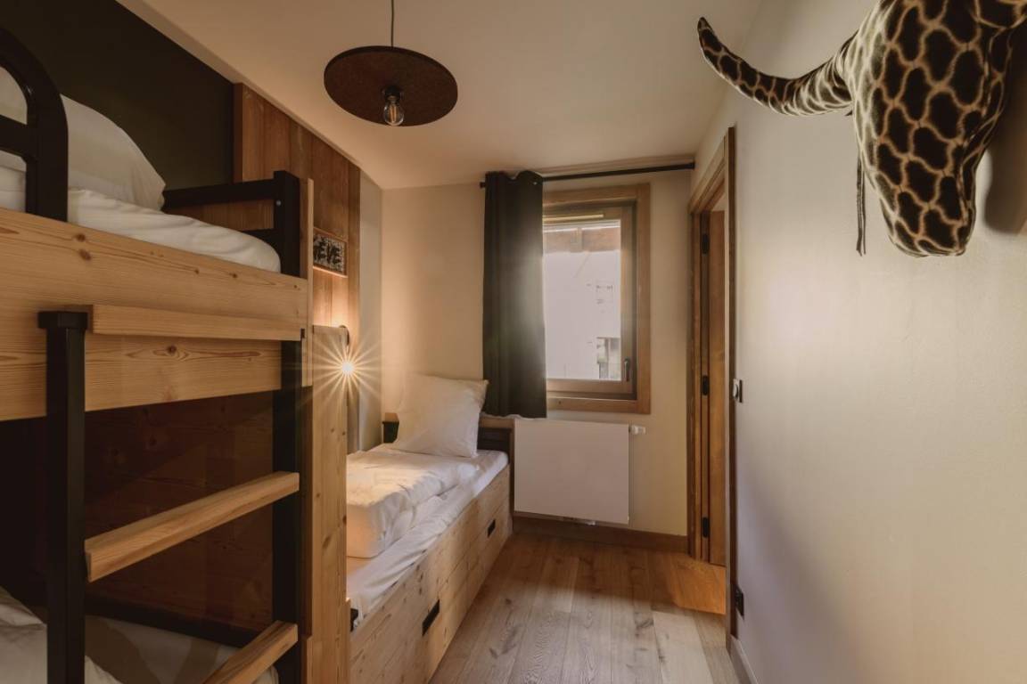 Fläche von ungefähr 67-75 m². Orientierung : Süd-Ost, Süd, Süd-West. Wohnzimmer mit Klappschlafcouch. Schlafzimmer mit Doppelbett (160*200). Schlafzimmer mit 2 Einzelbetten (80*200) oder Doppelbett (160). offener Schlafbereich mit 2 Stockbetten (80*190). Küche mit Wasserkocher, Kaffeemaschine (nepsresso), Backofen, Toaster, Geschirrspülmaschine, Mikrowellenherd, 2 Glaskeramikkochfelder, Kühlschrank. Waschräume. separates WC. Badezimmer mit Haartrockner, Handtuchtrockner. WC. Balkon ODER Terrasse. Die oberen Betten sind nicht für Kinder unter 6 Jahren geeignet.