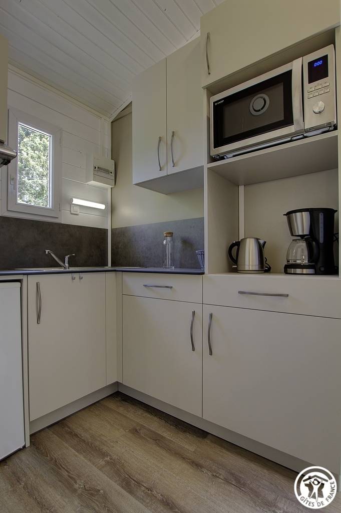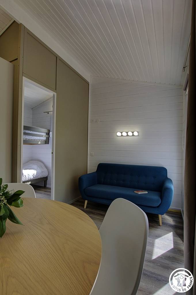Ob Kulturtourismus, Wandern, Mountainbiken, Angeln oder die regionale Küche – auf Camping de la Raza werden Sie fündig. Das komplett renovierte Chalet „Le Gardon" ist 35 m² groß und verfügt über ein Wohnzimmer mit Kochnische und Sofa, ein Badezimmer, zwei Schlafzimmer (eines mit Doppelbett und eines mit zwei Etagenbetten) sowie eine Terrasse mit Gartenmöbeln und Grill. TV und kostenloses WLAN sind vorhanden.