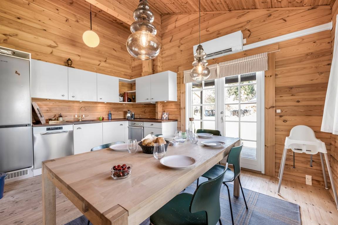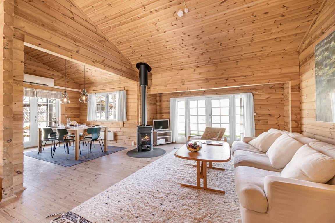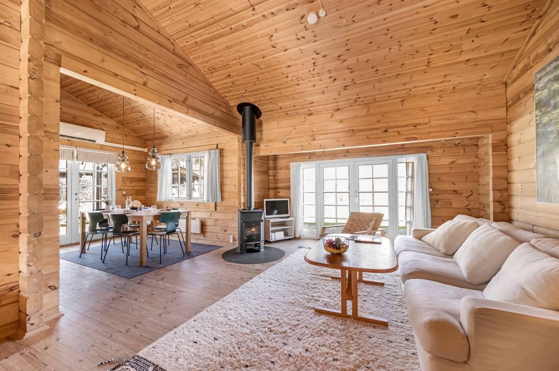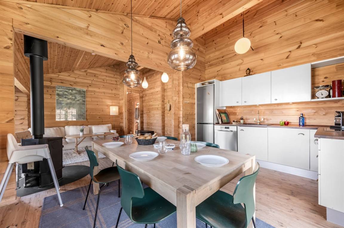 DraußenDie Ferienunterkunft liegt auf einem 1274 m² großen Naturgrundstück. Die Entfernung zum Meer beträgt 2300 m. Die Entfernung zum Fjord beträgt 3300 m. Die nächste Einkaufsmöglichkeit liegt 1200 m entfernt. In einem Abstand von 1800 m gibt es einen Golfplatz. Es steht ein offenes Terrassenareal zur Verfügung. Außerdem gibt es überdachte Terrasse. Es steht ein Grill zur Verfügung. Parkplatz auf dem Grundstück.