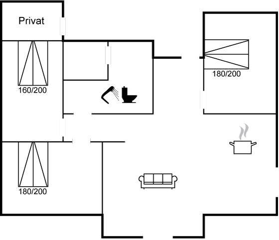 SchlafverhältnisseDie Schlafplätze verteilen sich auf 3 Schlafräume. 6 Schlafplätze in Doppelbetten.