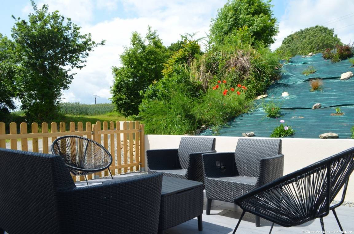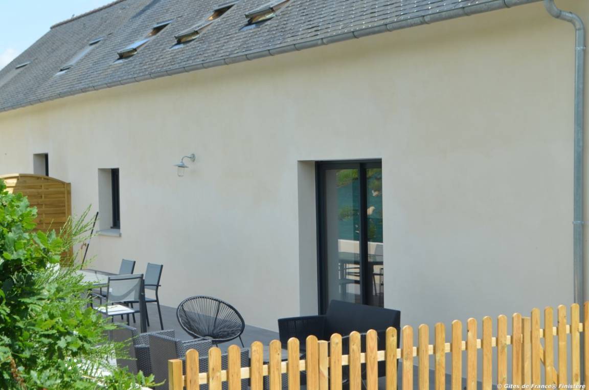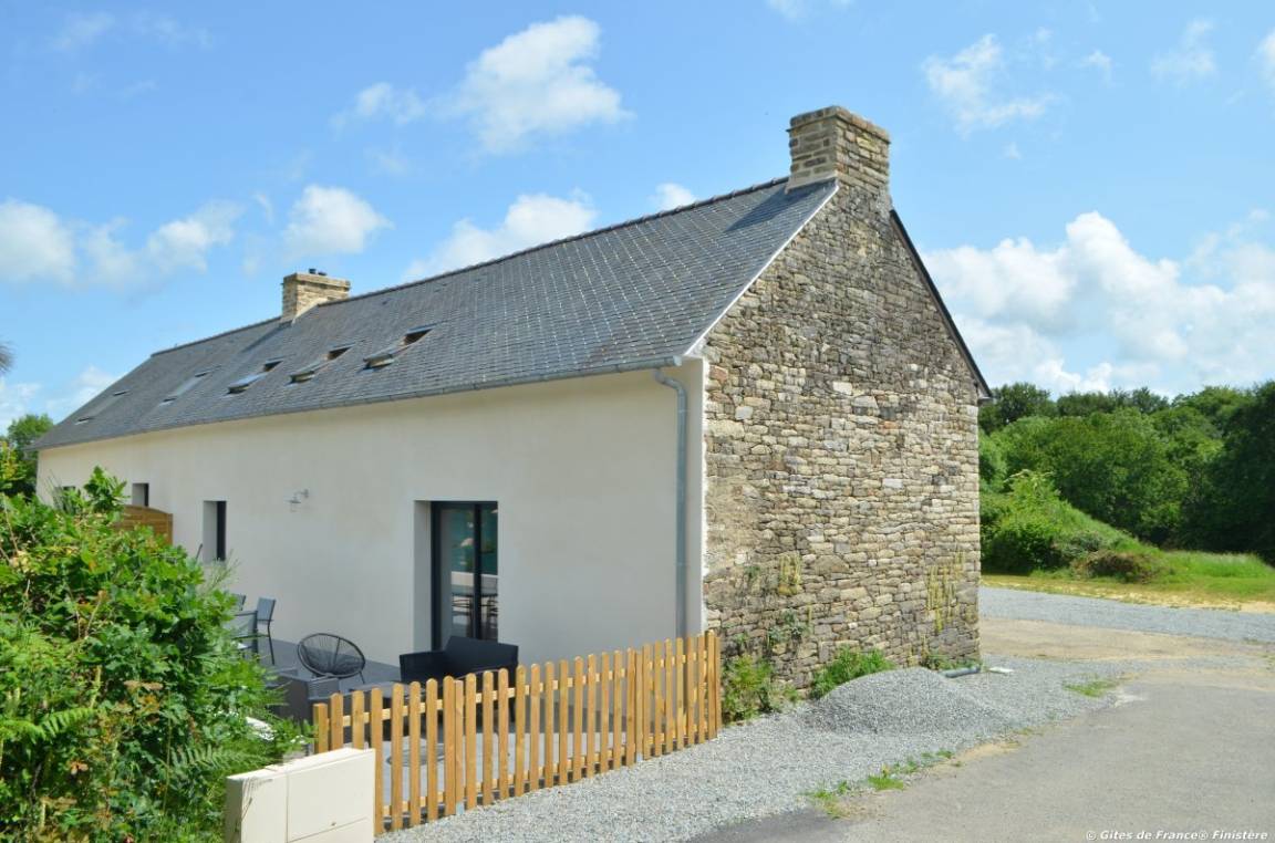 „Bon accueil du propriétaire avec découverte de la maison sans oublier le petit cadeau dégustation pour notre arrivée. Maison très bien située et agréable pour visiter le Finistère. Tout le confort est au rendez vous et si vous êtes amateurs de calme, vous serez dans votre élément. Terrasse extérieure. Nous recommandons vivement ce lieu bourré de charme.“
