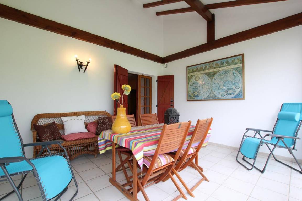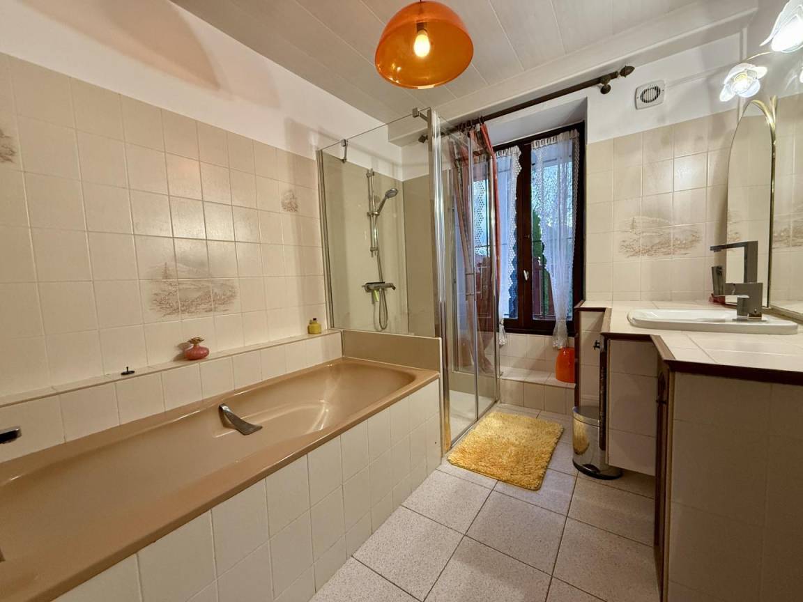 Etage: 3 Schlafzimmer (3 140-cm-Betten, 1 90-cm-Bett), eines davon öffnet sich auf eine überdachte Terrasse mit Blick auf die Berge, Toilette.