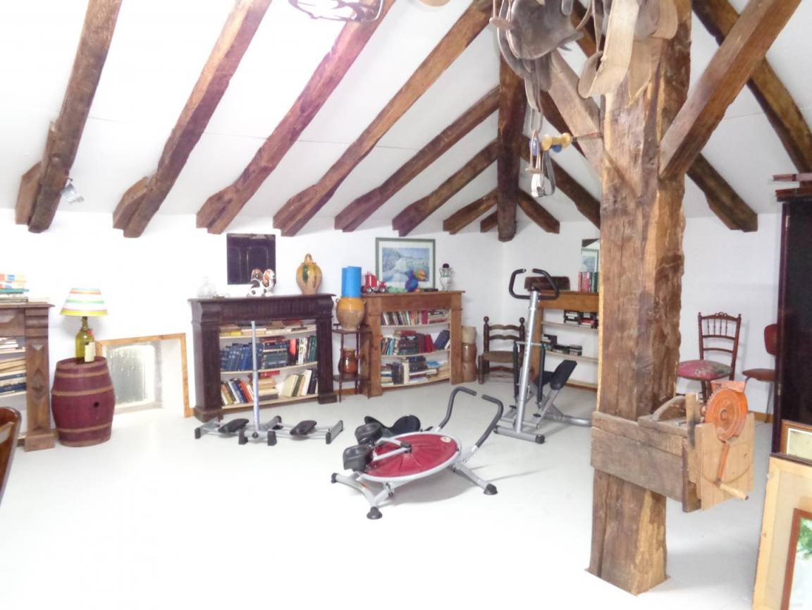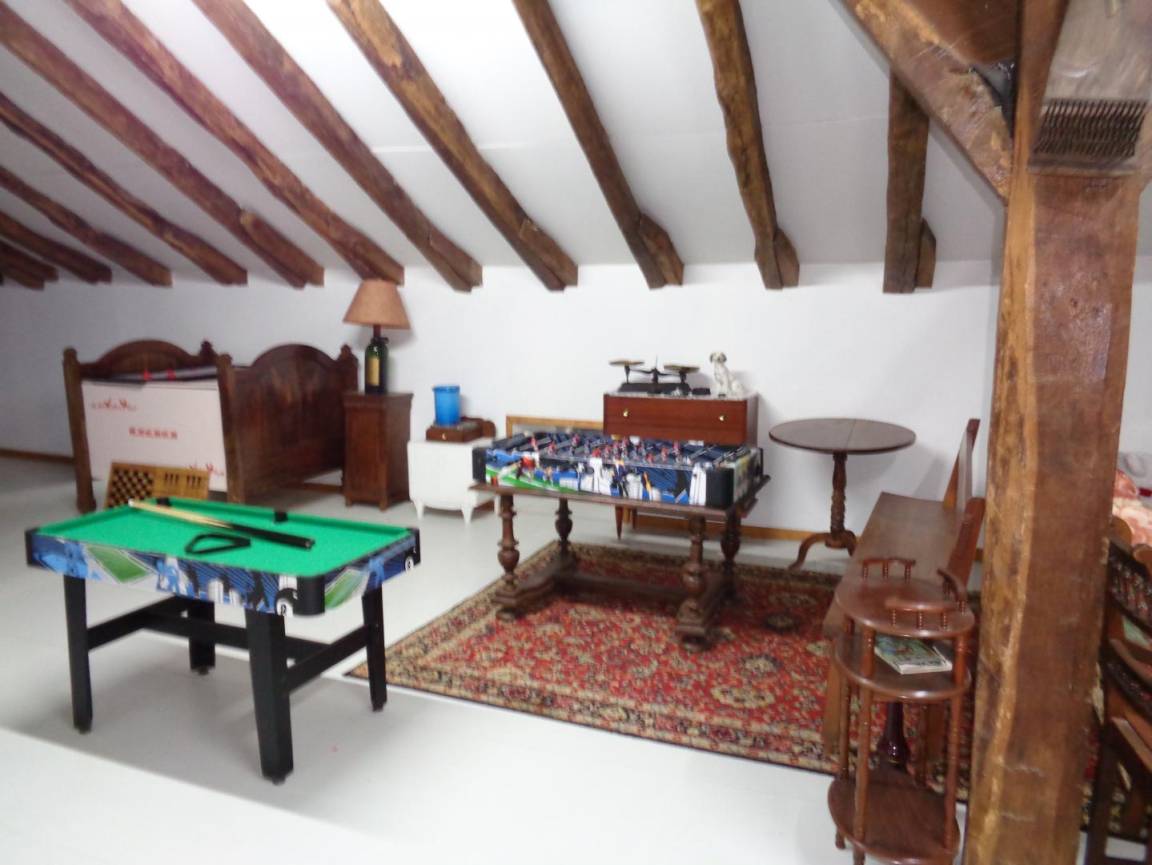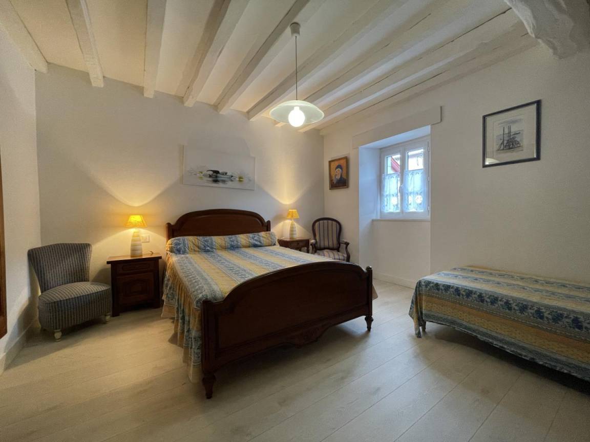 Obergeschoss: 3 Schlafzimmer (3 Doppelbetten + 1 Kinderbett), 1 Schlafzimmer (2 Einzelbetten), Duschbad. Entspannungslandung (Sofa, TV).