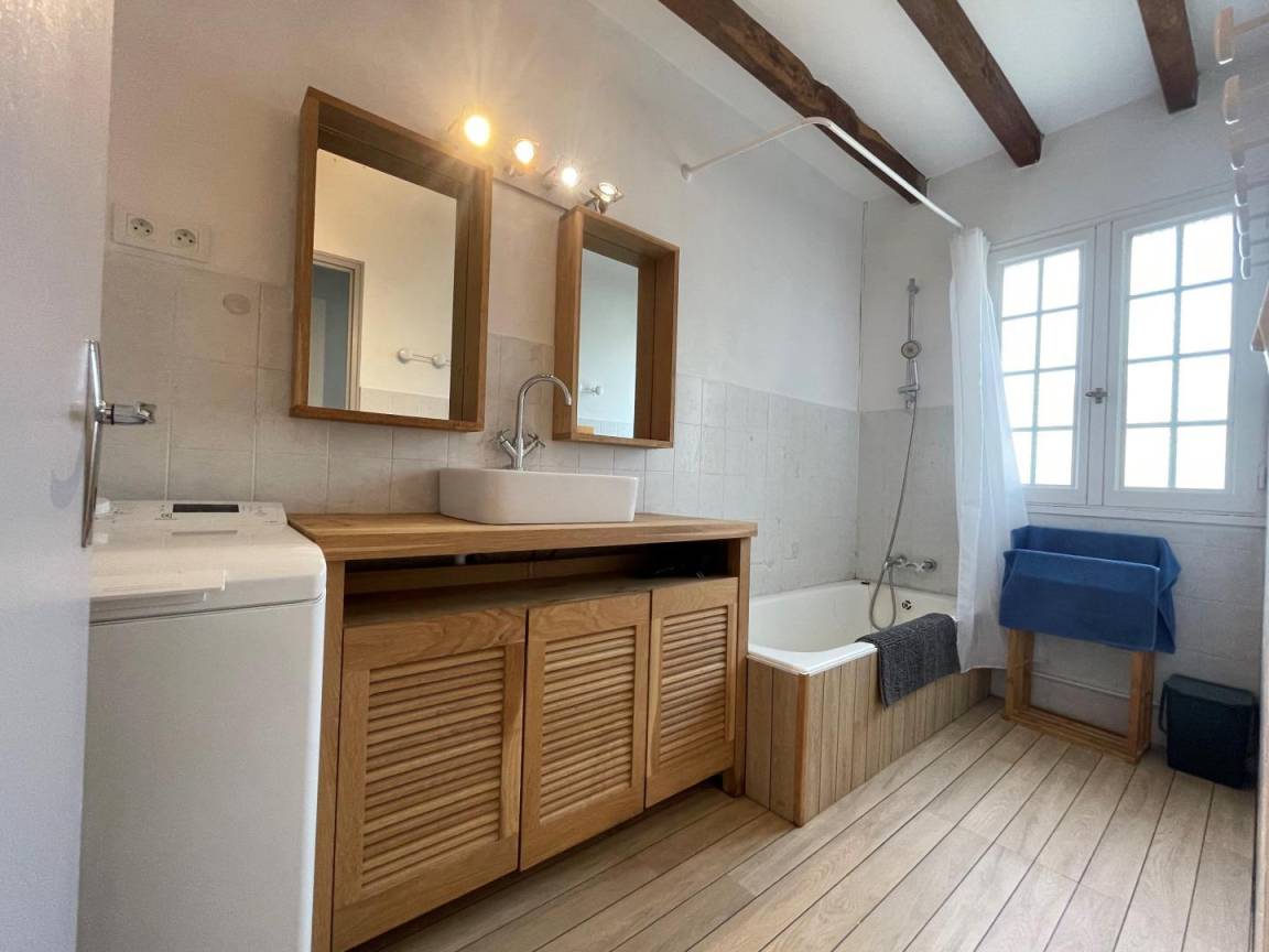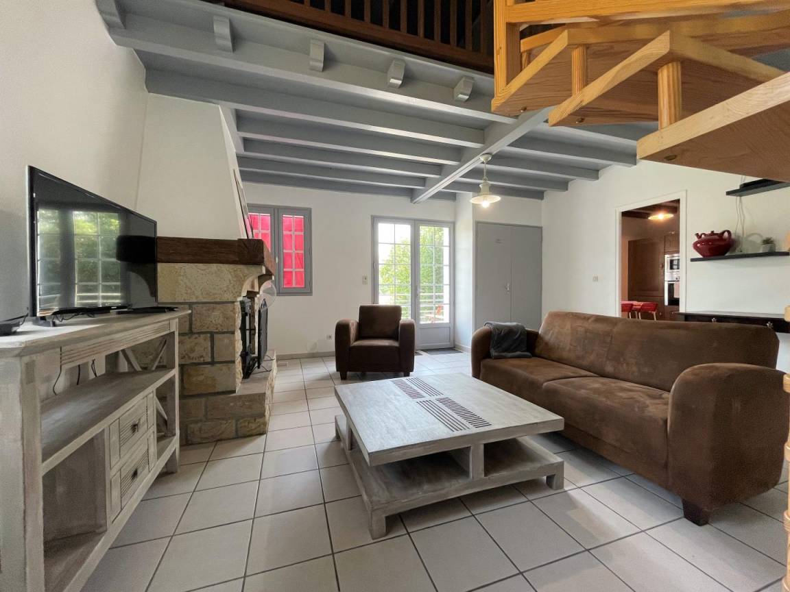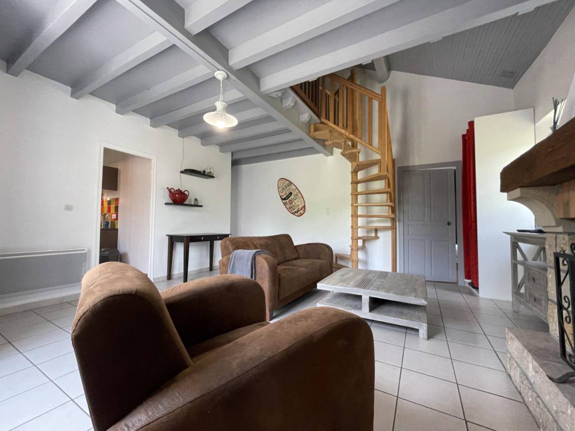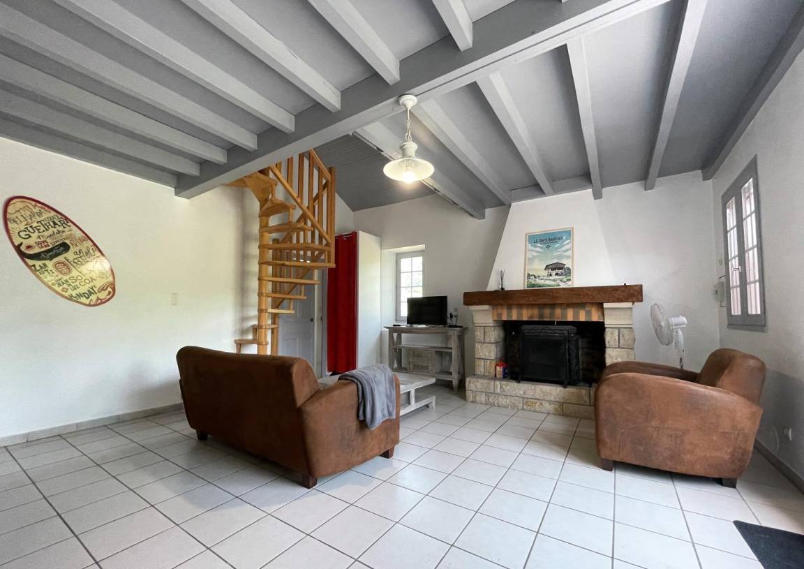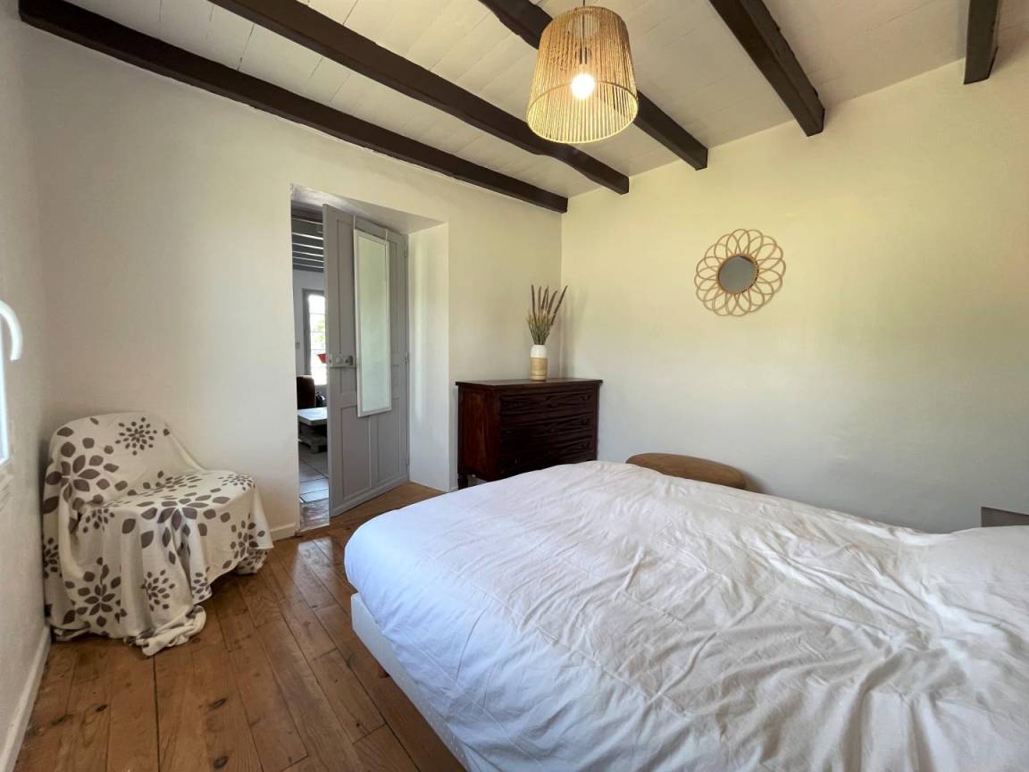 Ausgestattete Küche (Induktionskochfeld, Backofen, Geschirrspüler, Kühlschrank mit Gefrierfach), Wohnbereich (Kamin/Einsatz), 1 Schlafzimmer (1 Doppelbett), Badezimmer (Waschmaschine), Toilette.