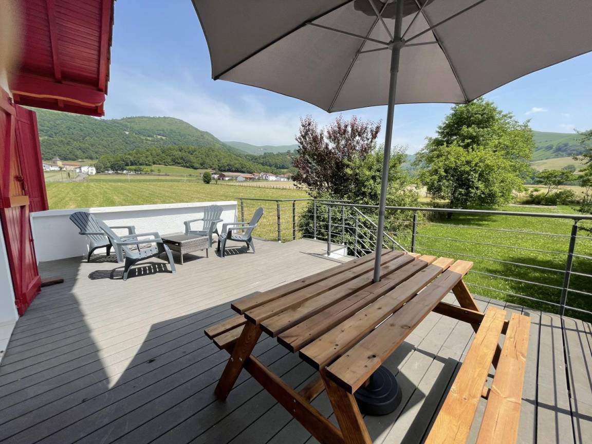 Wunderschöne Aussicht auf die Berge von der Terrasse. Wanderwege in der Nähe. Iraty bei 22 km.