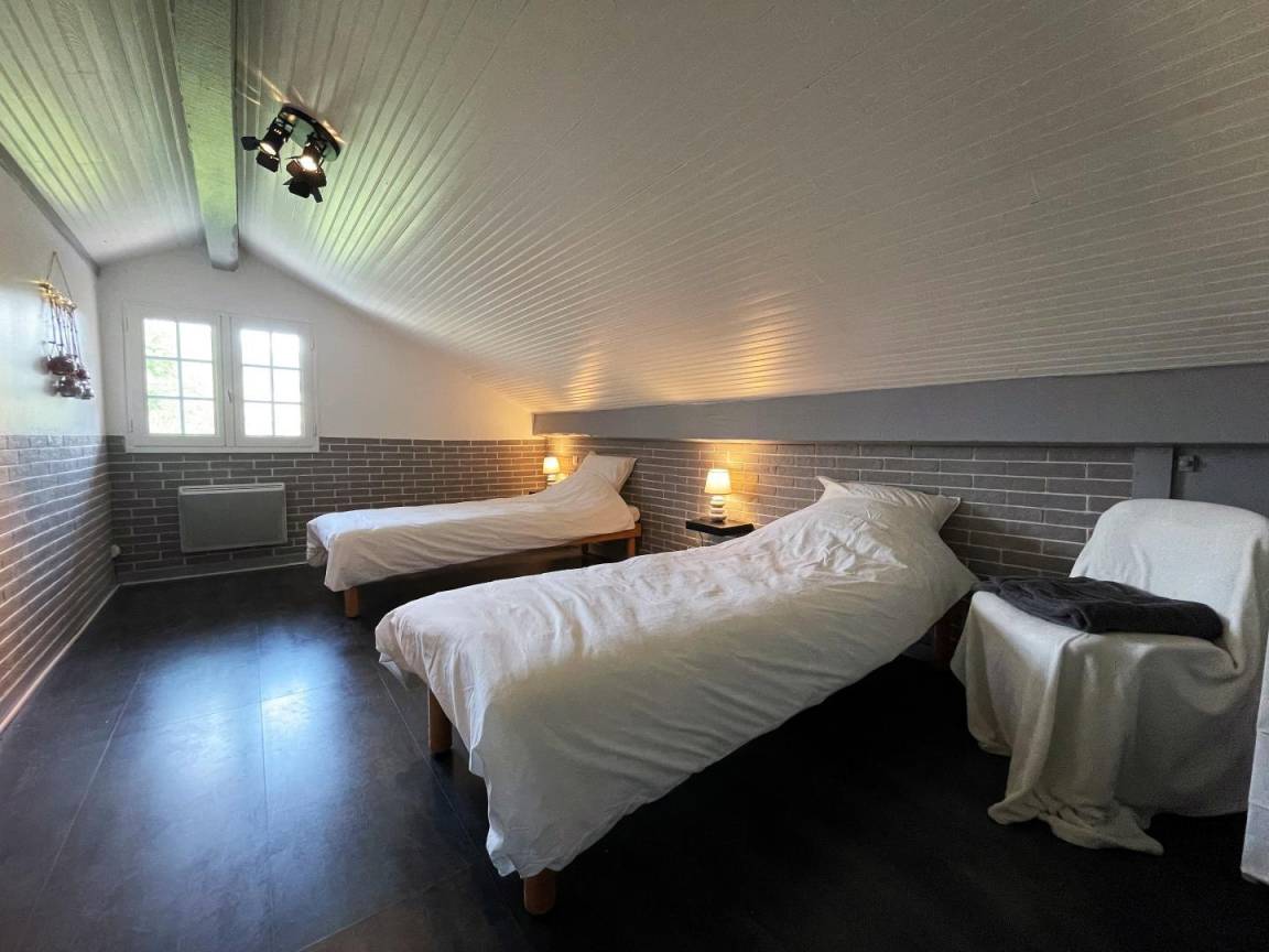 Dachgeschoss (Wendeltreppe): 1 Schlafzimmer (2 Einzelbetten 80 cm).
