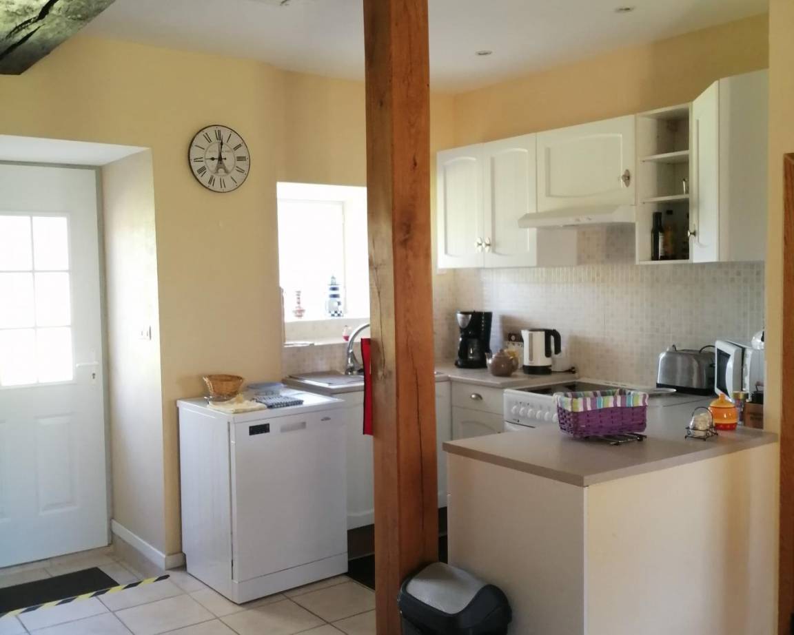 „Nous recommandons ce gite: Très bon accueil, les propriétaire sont présents à côté en cas de problème et ont été arrangeants pour nos jours d'arrivée/départ ce qui nous a permis d'éviter les bouchons. La maison est agréable, avec des livres pour tous les âges (en anglais!), quelques jeux, une pelouse très bien pour les enfants et des balançoires communes. Le seul petit point noir n'a rien à voir avec le gite en soi, c'est juste qu'il n'est pas trop possible de faire des ballades en partant à pied, la voiture est nécessaire pour aller voir les coins jolis.“