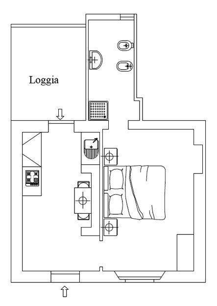 Caminetto (34 m²) ist eine eins-Zimmer Wohneinheit, mit eins Badezimmer. Hier können bis zu zwei Leute schlafen.