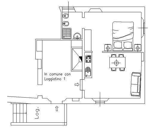 Loggiatino 2 (36 m²) ist eine eins-Zimmer Wohneinheit, mit eins Badezimmer. Hier können bis zu zwei Leute schlafen.