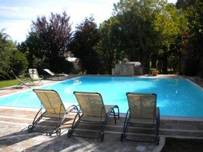 Garten: Schwimmbad (Breite: 8m, Länge: 11m), Kamin, Gartenmöbel, Sonnenliege.