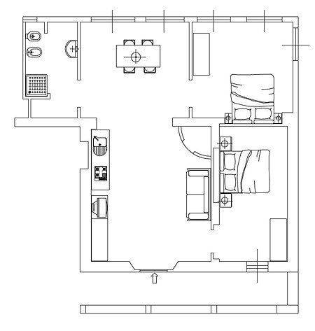 Archi ist eine zwei-Zimmer Wohneinheit, mit eins Badezimmer. Hier können bis zu vier Personen schlafen.