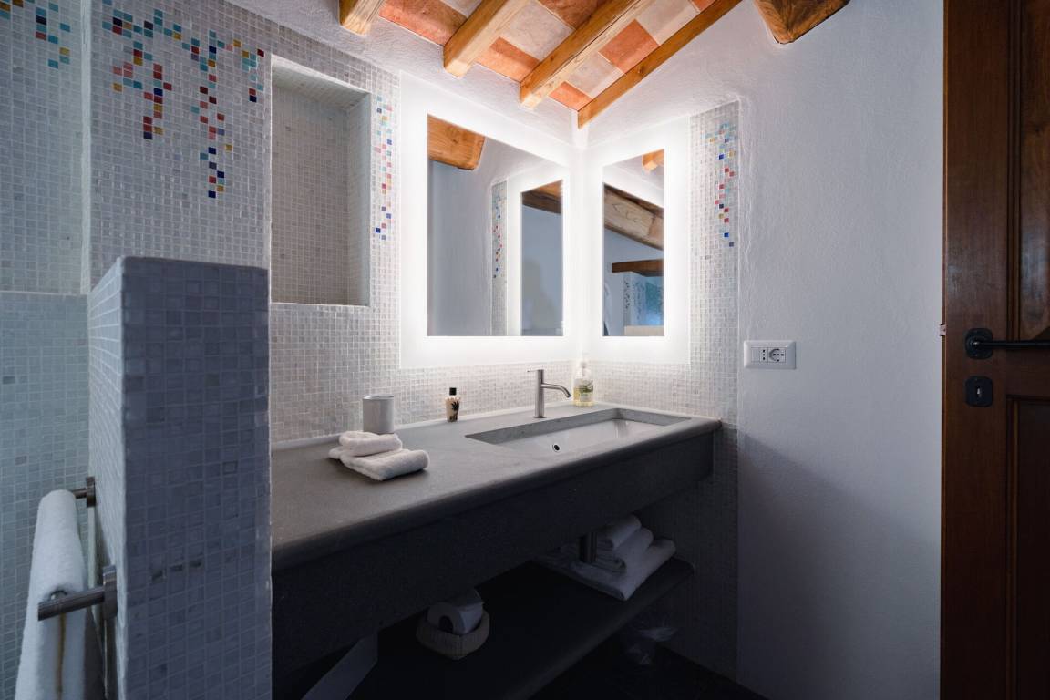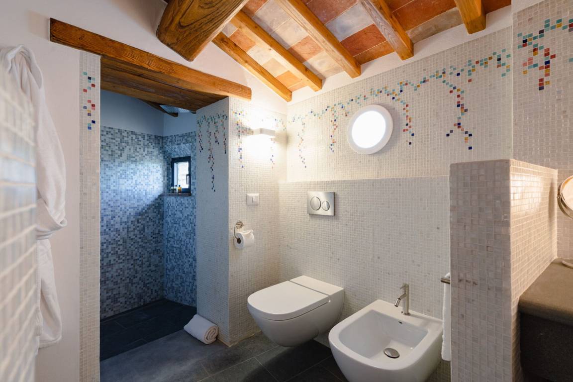 Schlafzimmer mit Bad 2: Doppelbett, WiFi Internet, Klimaanlage, tragbarer Ventilator, Waschbecken, WC, Bidet, Dusche, Fön.