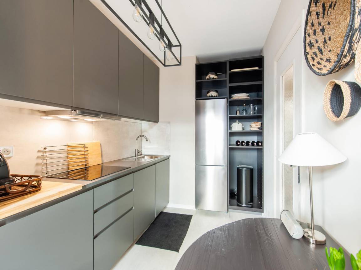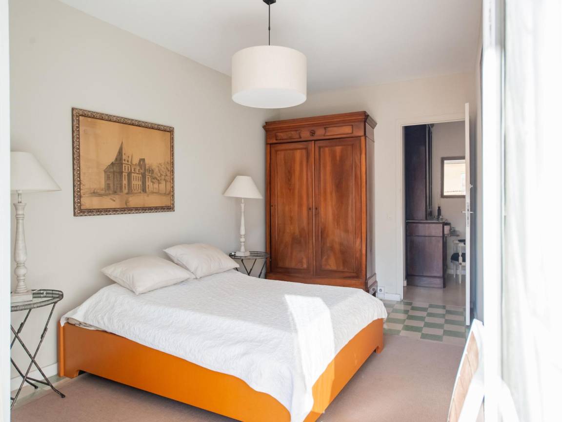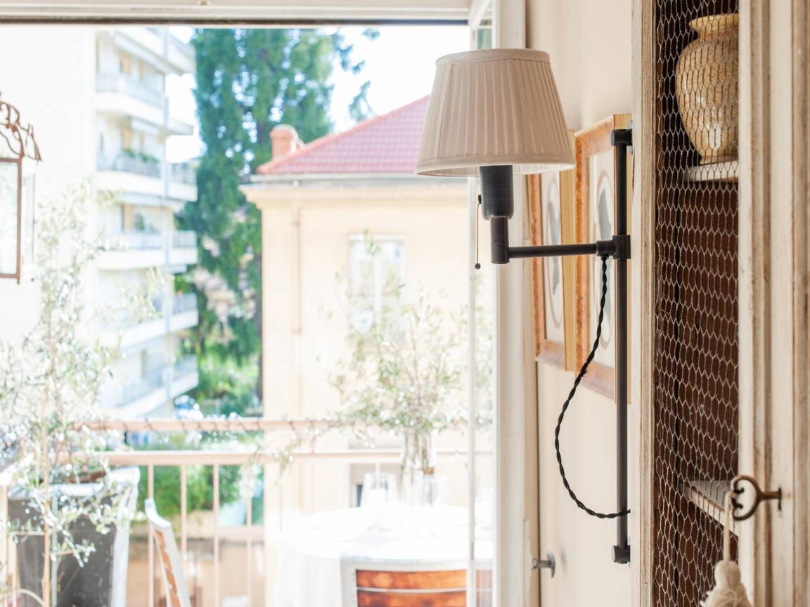 Hausbeschreibung : Chez Gabrielle, im 3. Stock, nur wenige Gehminuten vom Meer entfernt, bietet einen hellen Wohnraum mit Wohn- und Essbereich mit geschmackvoller Dekoration, eine moderne Küche (Herd, Kaffeemaschine, Backofen, Mikrowelle, Geschirrspüler, Kühl-/Gefrierschrank), zwei komfortable Schlafzimmer, ein geräumiges Bad mit Badewanne, separates WC und einen sonnigen Balkon oder eine Terrasse mit Gartenmöbeln