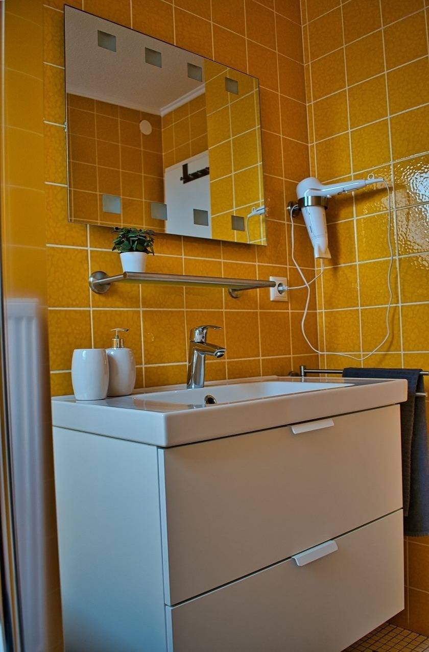 In unserer ca. 62m² großen Obergeschosswohnung für 2 bis 4 Personen finden Sie genug Platz um die Seele baumeln zu lassen. In der Wohnung finden Sie ein großes Wohn-/ Esszimmer mit angrenzendem Balkon, Flachbildfernseher mit HD-Programmen (Kabel), einen Blue-Ray Player, einer gemütlichen Schlafcouch für 2 Personen sowie kostenloses W-Lan. Ebenfalls befinden sich in der Wohnung ein Schlafzimmer mit einem Doppelbett und Kleiderschrank, ein sonnengelbes Badezimmer mit einer Dusch-Badewanne, ein separates WC sowie eine vollständig eingerichtete Küche.