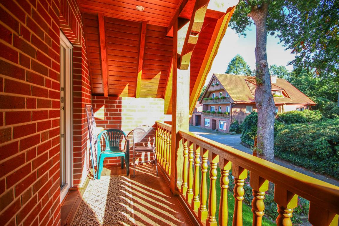 Ferner ist hervorzuheben der schöne Blick vom Balkon aus in unser Gehege, und von der Küche aus auf unsere Pferdekoppel.