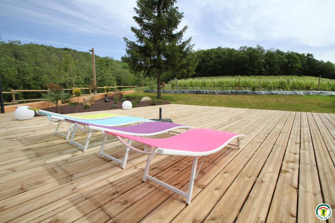 Erdgeschoss: Küche mit Klimaanlage (mit Heizfunktion), Wohnzimmer, Bad mit Dusche/WC. Obergeschoss: 3 Schlafzimmer (1 Bett 140 x190 cm) (2 Betten 90 cm oder 1 Bett 180 x 200 cm) (2 Betten 90 x200 cm zusammenstellbar zu 1 Bett 180 x 200 cm), WC. Boule-Plätze, Tischtennis, Tischfußball. Eigene Terrasse, gemeinsamer Garten mit 3 anderen Ferienunterkünften. Zugang über einen befahrbaren Steinweg.