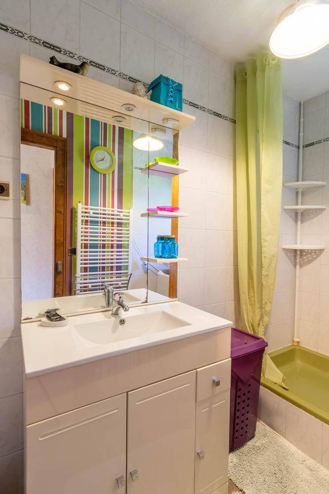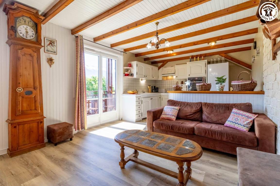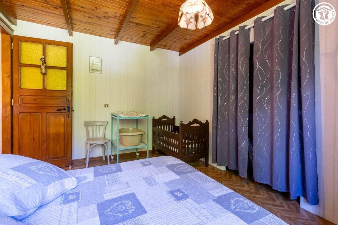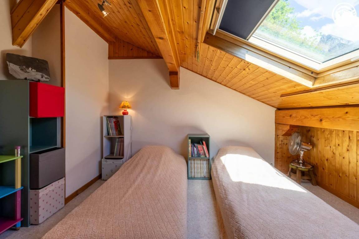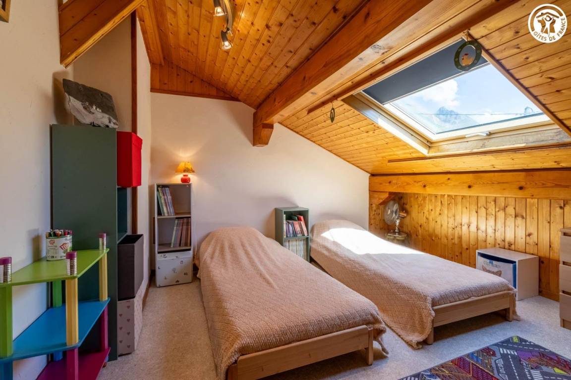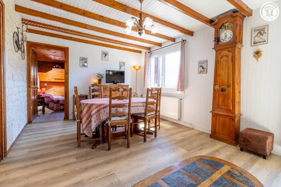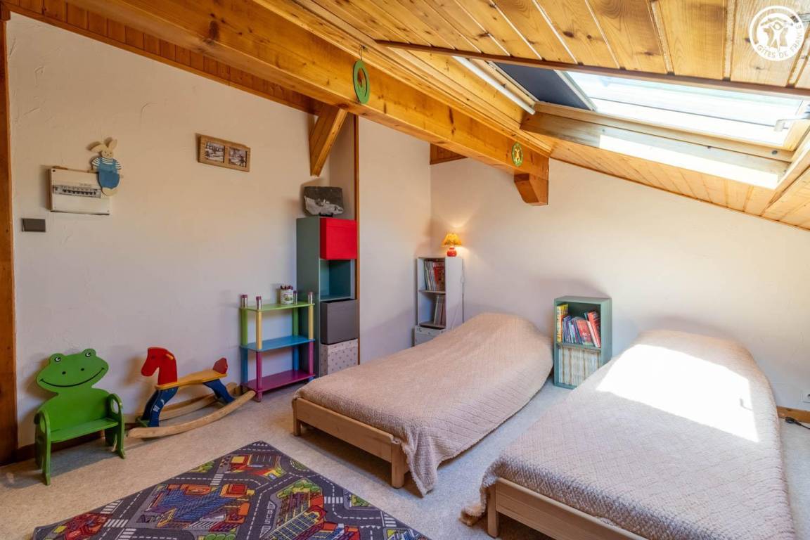Im Haus des Eigentümers, im 2. Stock (gemeinsamer Eingang und gemeinsame Innentreppe). Wohnung: Wohnküche mit Balkon, 3 Schlafzimmer (1 Doppelbett 140x190 cm + 1 Holz-Kinderbett 60x120 cm / 1 Doppelbett 140x190 cm / 2 Einzelbetten 80x190 cm), Badezimmer (Dusche, Waschmaschine), Toilette mit Waschbecken. Gemeinsam mit dem Eigentümer genutztes, nicht eingezäuntes Grundstück mit möbliertem Essbereich. Ski- und Fahrradaufbewahrung. Privatparkplatz auf dem Grundstück.