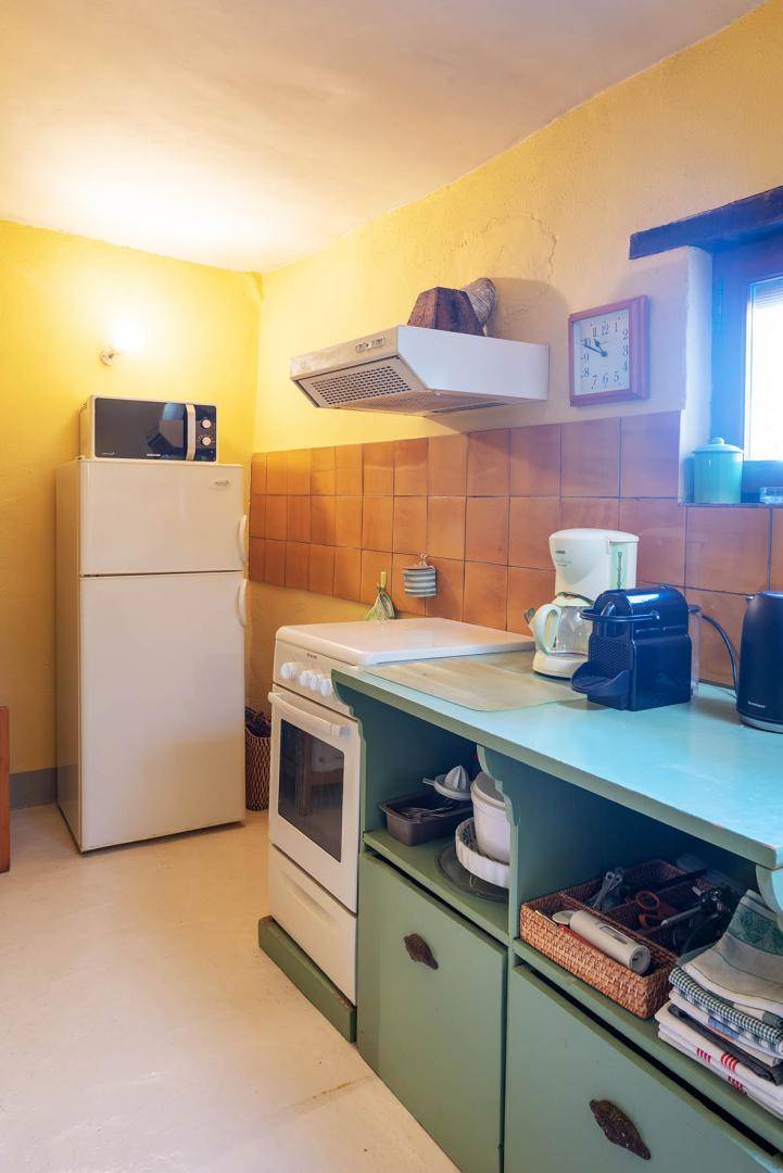 Esszimmer/Küche, Wohnzimmer. 2 Schlafzimmer (1 Bett 140 cm) (2 Betten 90 cm), 2 Badezimmer mit Dusche (darunter eines mit Außenzugang), 2 WCs. Handtücher inklusive. Parkplatz.