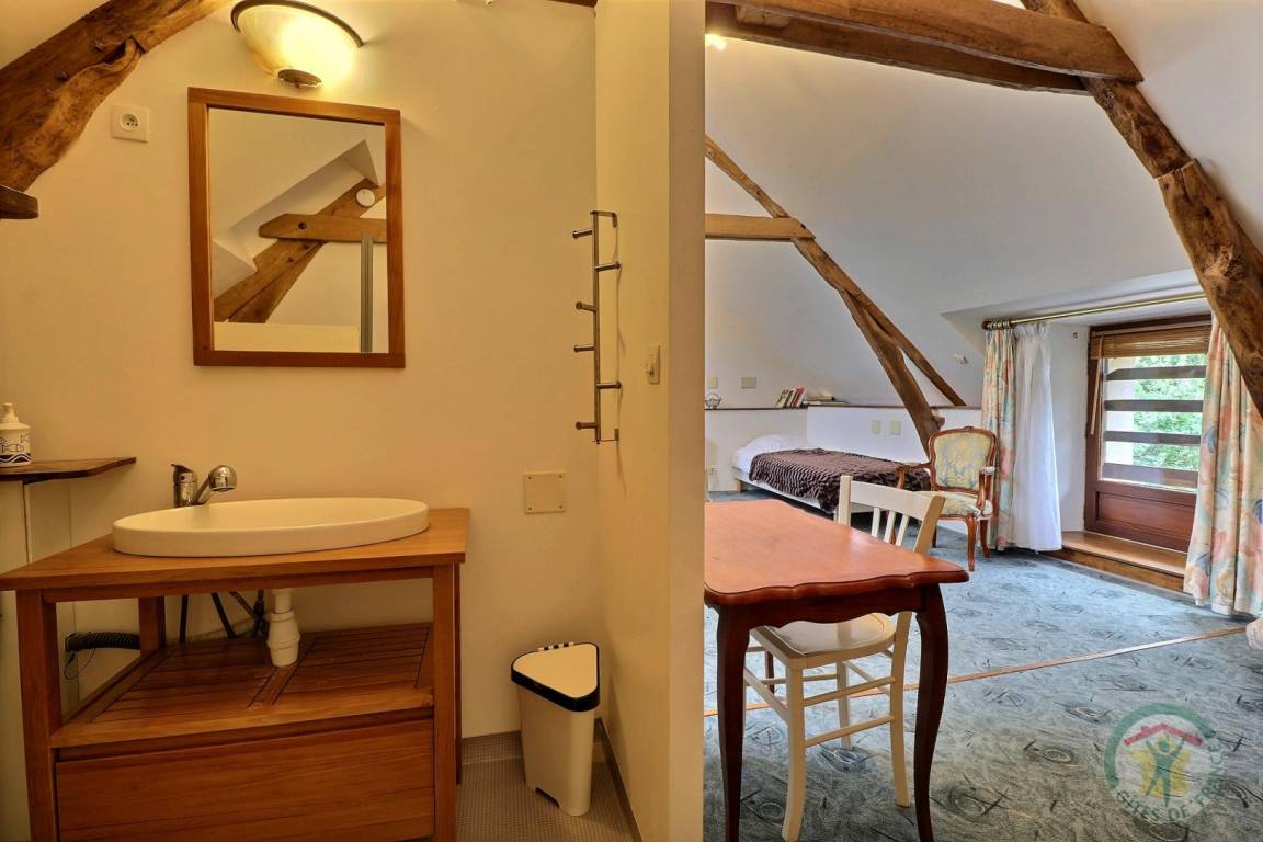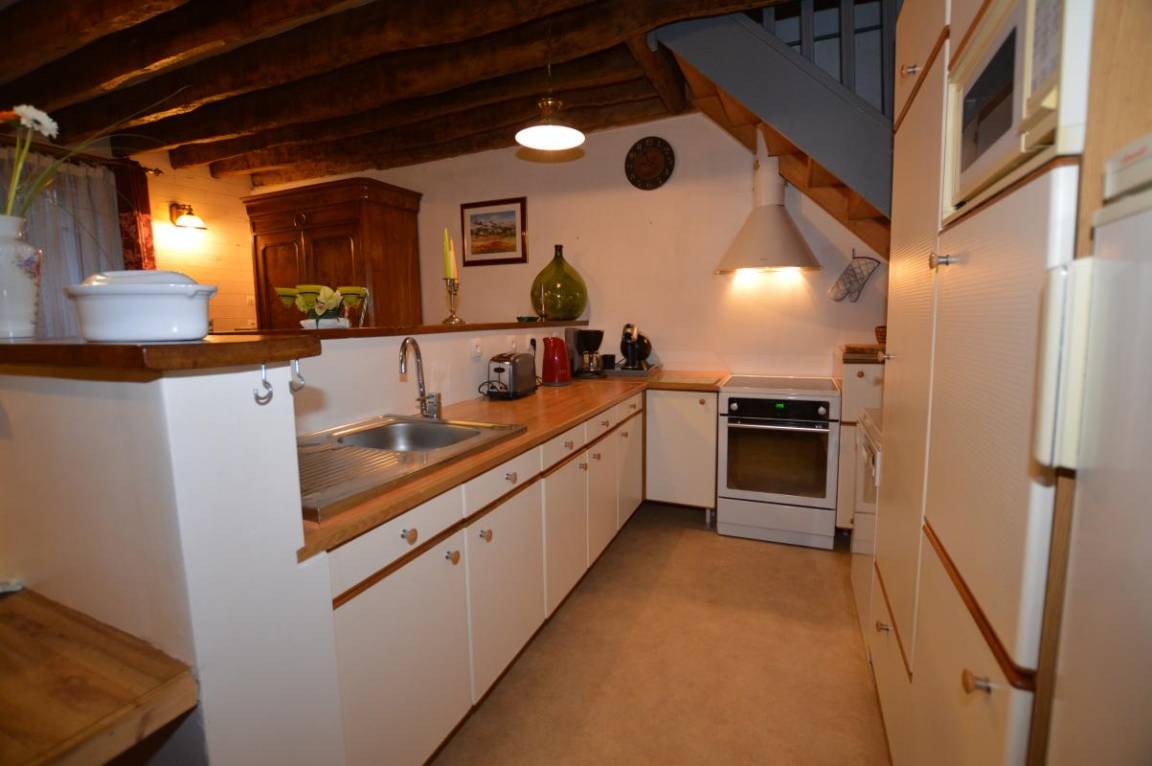 EG: ausgestattete Küche, Esszimmer mit Sofa. Badezimmer und Dusche. 2 separate WC. 1 Schlafzimmer (1 Doppelbett). Stockwerk: 1 großes Schlafzimmer 34 m² mit Waschbecken, 1 Sofa, 2 Einzelbetten (100), und 1 Doppelbett (Steppdecken). Heizung mit Heizöl , Geschäfte 4 km.