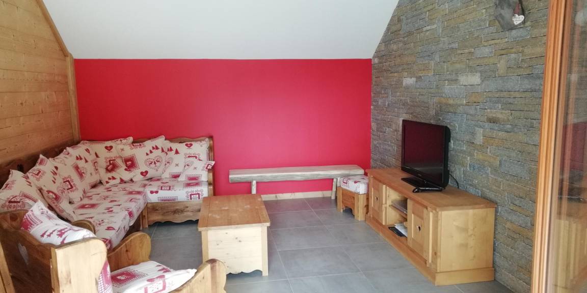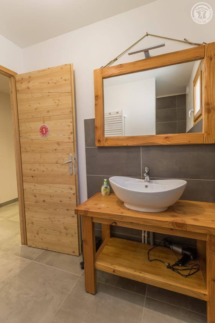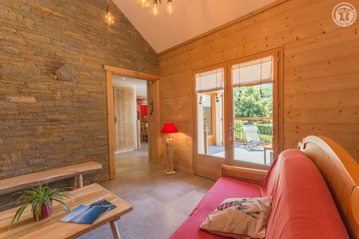 „Gîte bien conçu avec une décoration type chalet qui met en avant le bois et le talent des menuisiers. Parfaitement bien situé dans un village sympathique a proximité des chemins de randonnée.“
