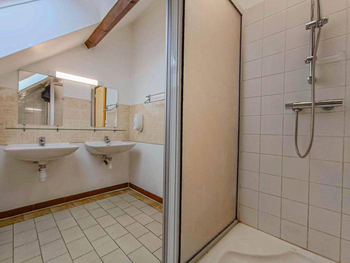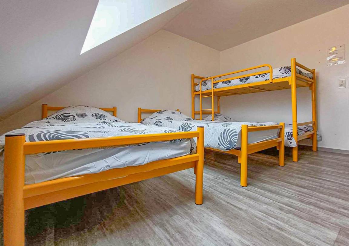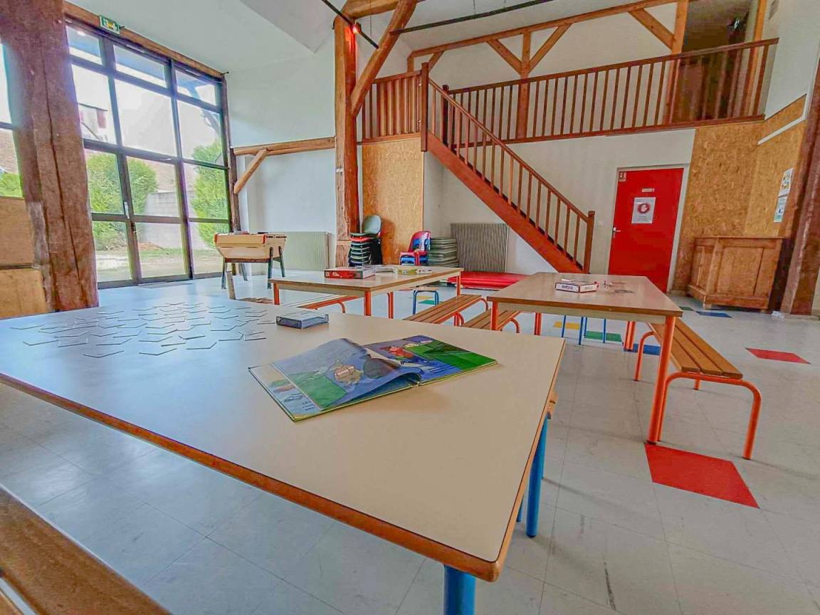 Im Erdgeschoss: professionelle Küche, stimmungsvolles Esszimmer, Sanitärräume. OG, für 60 Personen: drei Zimmer zu 8 Personen und zwölf Zimmer für 2 bis 4 Personen. Eingezäunte Grünflächen. DDJS, Inspection Académique. Option Reinigung: 17 €/Stunde. Option Bettwäsche: 4,30€/Bett. Nur Übernachtung oder Vollpension. Festsaal, Klassentreffen, Gruppen, Familien. Aktivitäten: Reiten, Kajak, Mountainbiking, Bogenschießen, Pingpong, etc. Ferienwohnung unter der Verwaltung eines Verbandes (Mitgliedschaft). Wochen- und Gruppen-Pauschalen werden angeboten. Möglichkeit der Vollpension für Kinder: 33 €/Tag. Kaution wird für Gruppen bei Ankunft verlangt.