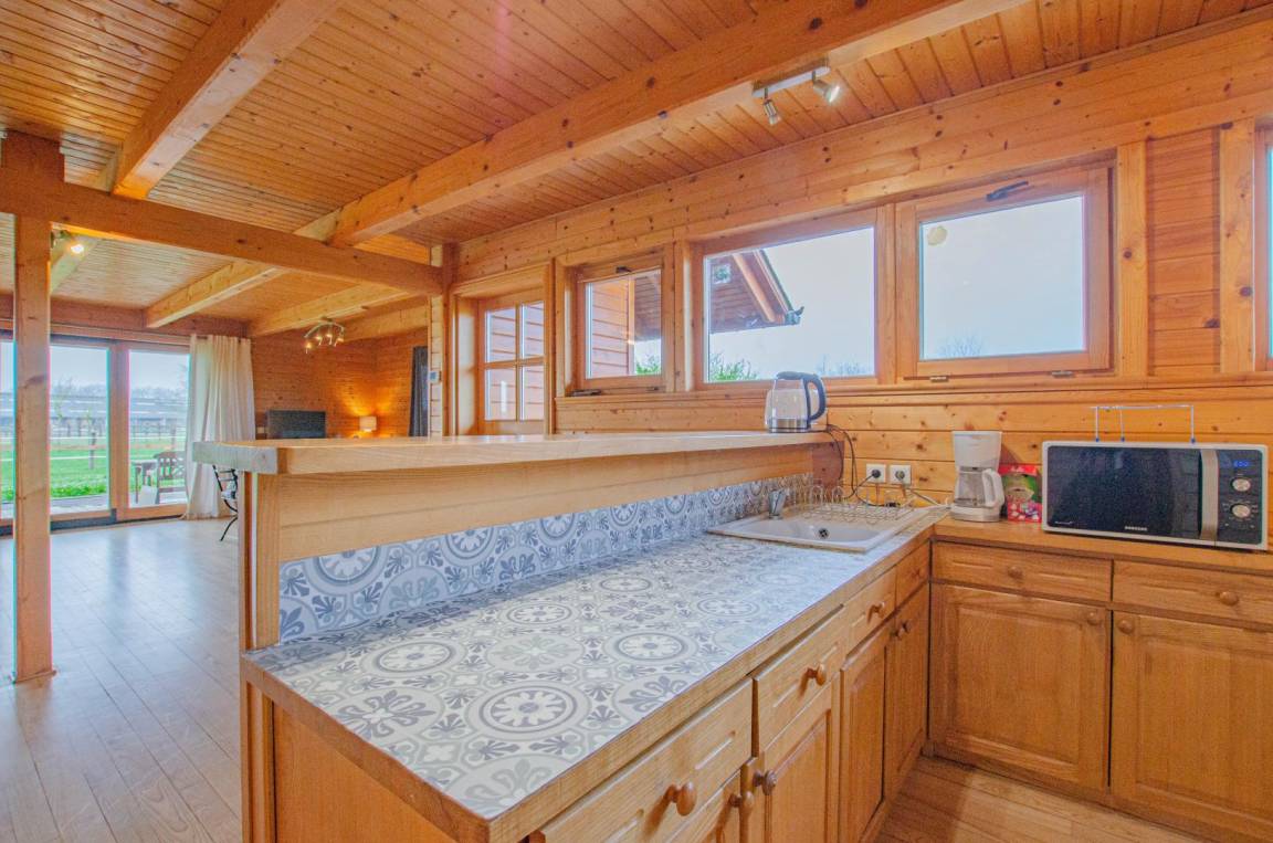 „Séjour agréable et le chalet est très bien équipé. Un bémol, avec la literie, lit de 140, bas et basique. Le site est tellement beau, on oublie!“