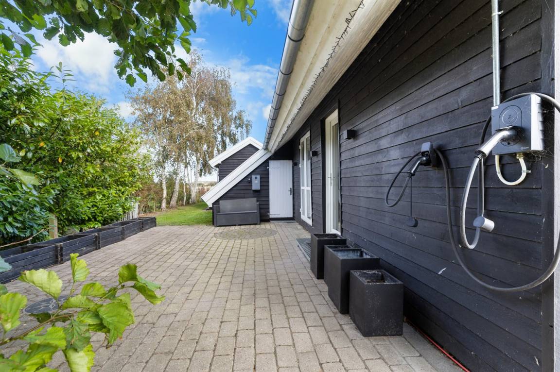 DraußenDie Ferienunterkunft liegt auf einem 675 m² großen Gartengrundstück. Das Grundstück ist eingezäunt. Die Entfernung zum Meer beträgt 250 m. Die nächste Einkaufsmöglichkeit liegt 2000 m entfernt. In einem Abstand von 5600 m gibt es einen Golfplatz. Es steht ein offenes Terrassenareal zur Verfügung. Außerdem gibt es überdachte Terrasse. Es steht ein Grill zur Verfügung. Es ist ein Ladestecker für Elektroautos installiert. Ladestecker Typ 2. Mit einer Ladeleistung von 9 kW. Parkplatz auf dem Grundstück.