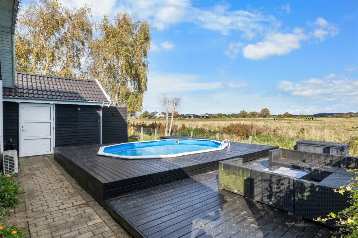 Das Haus wurde 2022 letztens renoviert und tritt modern und gepflegt hervor. Hinter dem Haus findest du einen geschlossenen Terrassenbereich mit einem Außen-Swimmingpool und einer gemütlichen Lounge-Ecke. Von hier aus hast du Ausblick auf die Wiesenlandschaft.Außerdem gibt es eine große, überdachte Terrasse mit direktem Zugang vom Wohnzimmer aus. Auf dem eingezäunten Grundstück ist reichlich Platz für Aktivitäten im Freien.