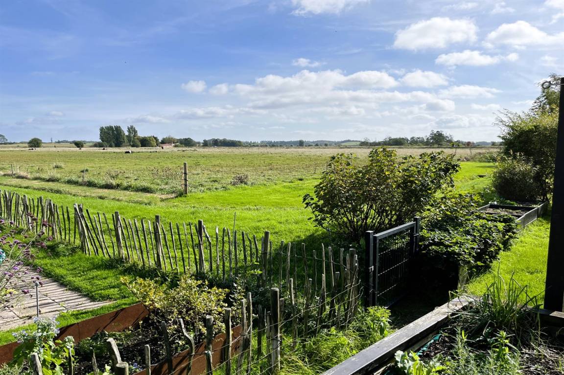 Rund um das Haus gibt es mehrere Terrassen, von denen zwei überdacht sind. So hast du sowohl morgens als auch abends die Möglichkeit, die Sonne zu genießen. Von der erhöhten Südwest-Terrasse hast du einen Blick auf das Wasser, und von der Terrasse hinter dem Haus reicht der Ausblick über die Wiesenlandschaft. Der Terrassenbereich und ein großer Teil des Gartens sind eingezäunt.