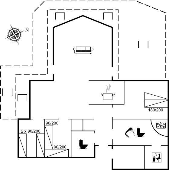 SchlafverhältnisseDie Schlafplätze verteilen sich auf 3 Schlafräume. 2 Schlafplätze in einem Doppelbett. 4 Schlafplätze in Einzelbetten. 2 Schlafplätze auf Matratzen. 2 von diesen Schlafplätzen befinden sich im offenen Obergeschoss. Ferner steht ein Kinderbett zur Verfügung.