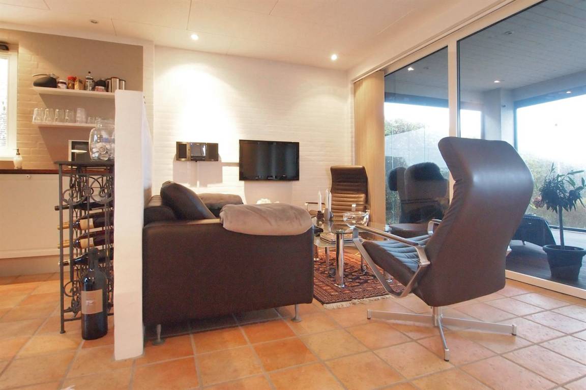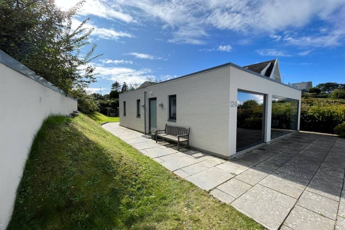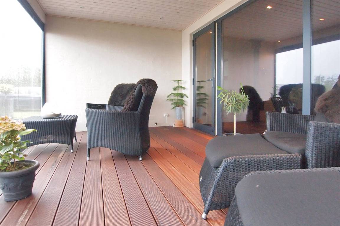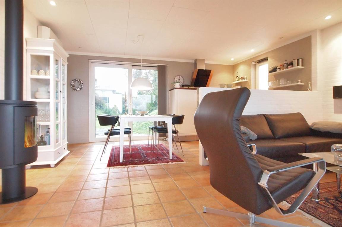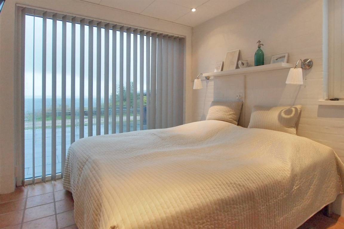 Vom Haus, vom Wintergarten und von der Terrasse aus hast du einen wunderbaren Ausblick über den nördlichen Lillebelt. Die Glasfronten des Wintergartens lassen sich zur Seite schieben, sodass der Wintergarten fast zu einem Teil der Terrasse wird.