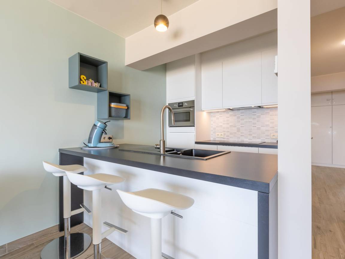 Hausbeschreibung : Moderne Wohnung im 5. Stock mit frontalem Meerblick. 2 Schlafzimmer: eines mit Doppelbett und eines mit Etagenbett für 3. Stilvolles Wohnzimmer mit schönem Meerblick und halboffener, voll ausgestatteter Küche. Renoviertes Bad mit Dusche. Große Terrasse hinten mit Blick ins Hinterland. Komfortabel für einen erholsamen Urlaub am Meer.