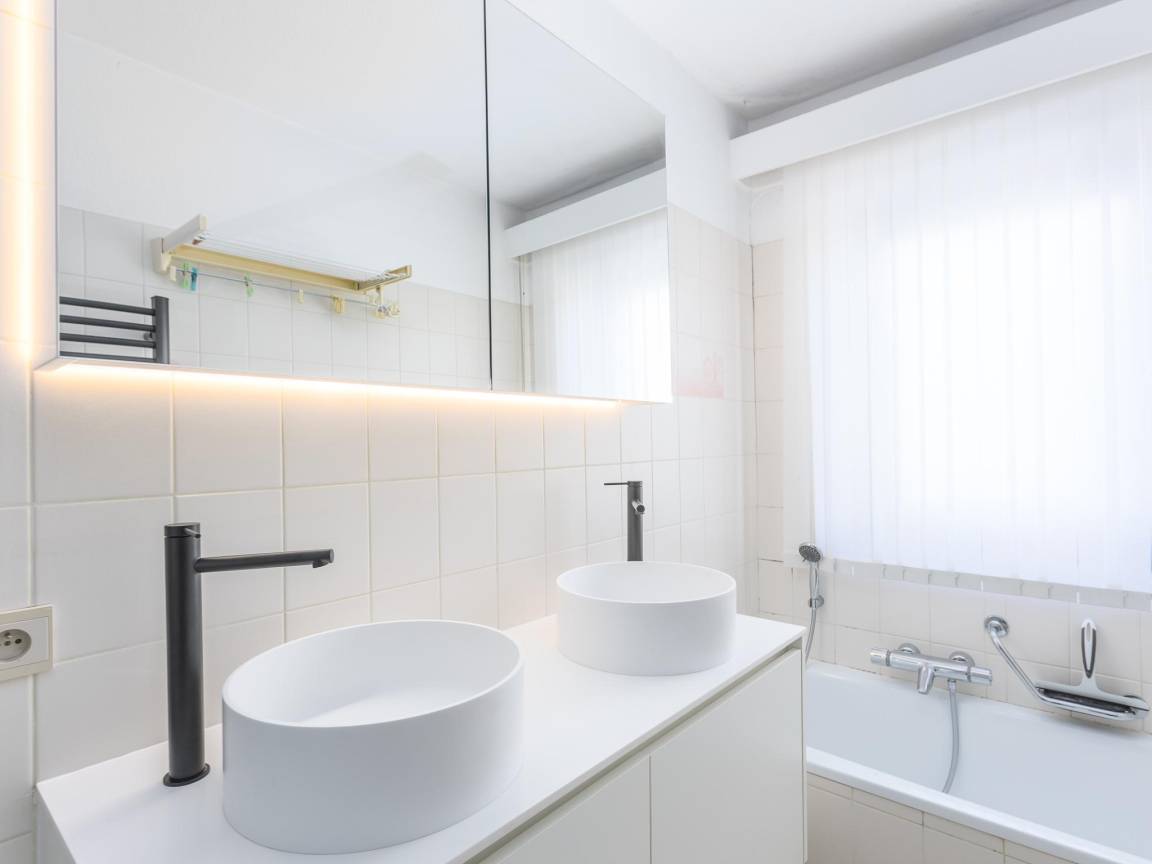 Hausbeschreibung : Gemütliche Eckwohnung im 5. Stock mit schönem Meerblick. 2 Schlafzimmer: eines mit Doppelbett und eines mit Etagenbett. Modernes Wohnzimmer mit Schlafsofa und offener Küche, große Fenster mit Meerblick. Bad mit Badewanne und Dusche, separates WC im Flur. Direkt an der Promenade, nahe Strand und Einrichtungen.
