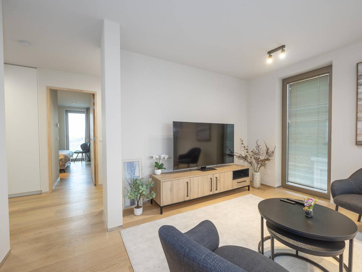 Hausbeschreibung : Stilvolle Neubauwohnung im 1. Stock, ideal für einen Urlaub am Meer. Zwei Schlafzimmer mit Doppelbett sowie Schlafsofa im Wohnbereich. Helles Wohnzimmer mit bodentiefen Fenstern und Zugang zur sonnigen 14 m² Terrasse. Offene, voll ausgestattete Küche, Abstellraum, modernes Bad mit begehbarer Dusche und separates WC. Privater Parkplatz. Toplage: 10 Min. zu Strand und Promenade, nahe Geschäften, ÖV und Normandpark.