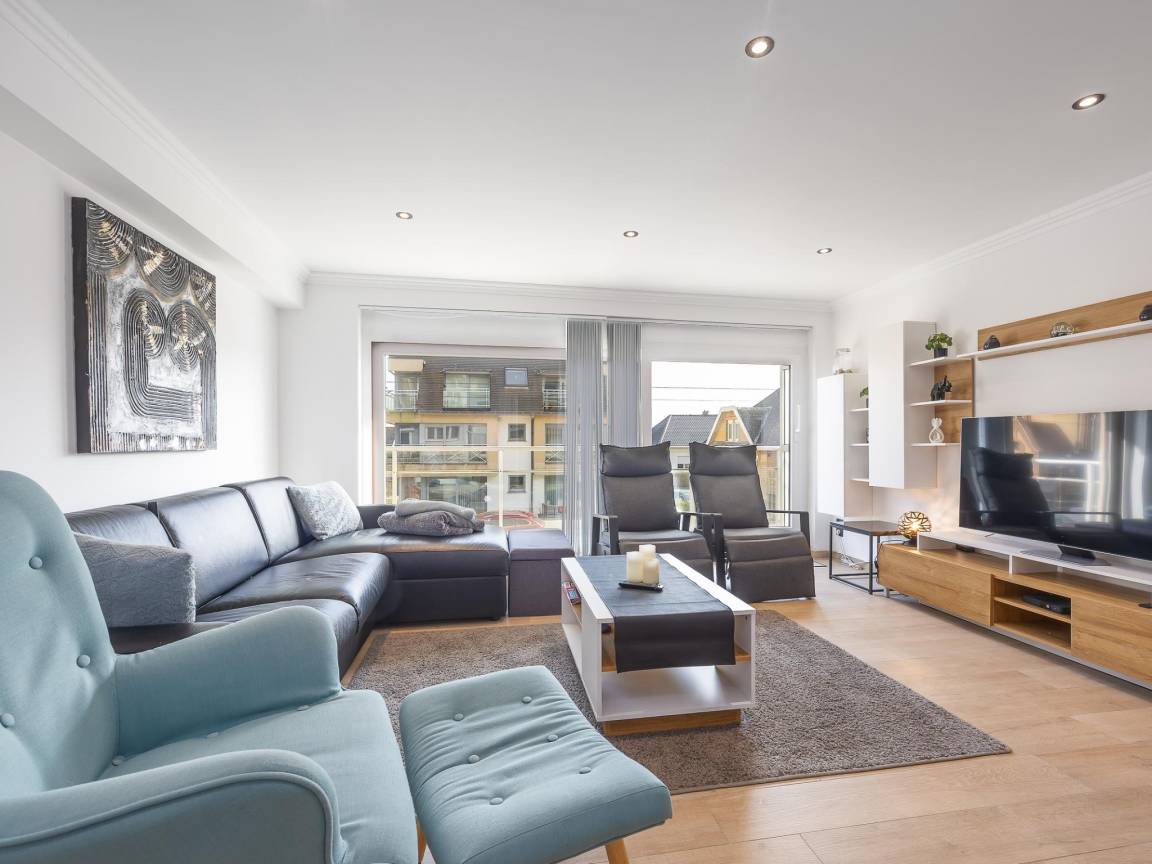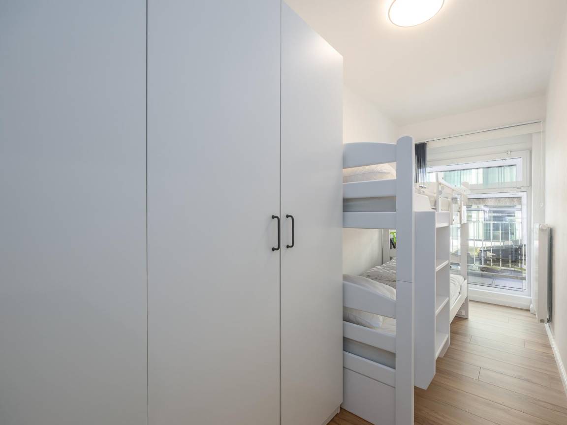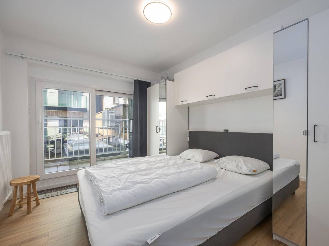 Hausbeschreibung : Schön renovierte Wohnung im 1. Stock der Residenz Royal, nahe Strand und Promenade. Für max. 6 Personen. Helles Wohnzimmer mit bodentiefen Fenstern und Zugang zur sonnigen Terrasse. Voll ausgestattete offene Küche. 2 Schlafzimmer (1 Doppelbett, 1 Etagenbett) Schlafsofa für 2 Personen. Bad mit ebenerdiger Dusche und WC, Abstellraum mit Waschmaschine.