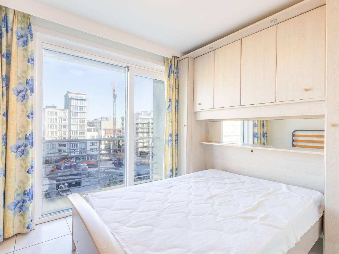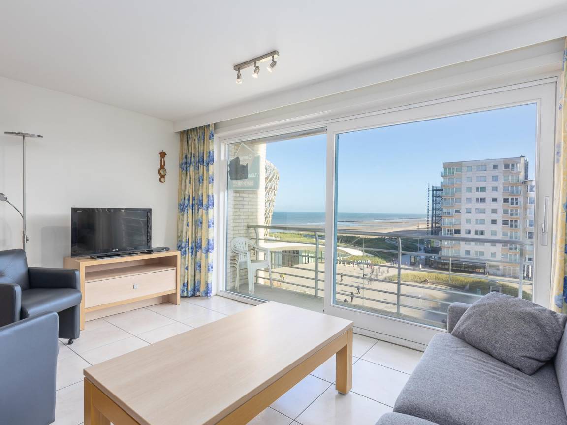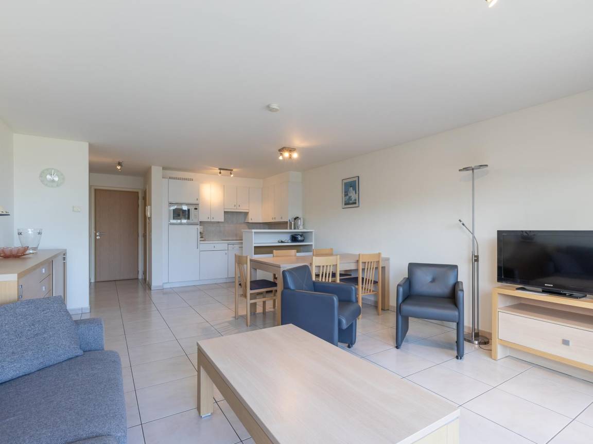 Hausbeschreibung : Wunderschöne Wohnung im 5. Stock mit Meerblick und Blick auf das neue Casino. 1 Schlafzimmer mit Doppelbett und Rollbett sowie Schlafsofa für 2. Heller Wohnbereich mit voll ausgestatteter offener Küche und Esstisch. Bad mit Doppelwaschbecken und Badewanne, separates WC. Zentral in Middelkerke nahe Tram, Geschäften und Restaurants.