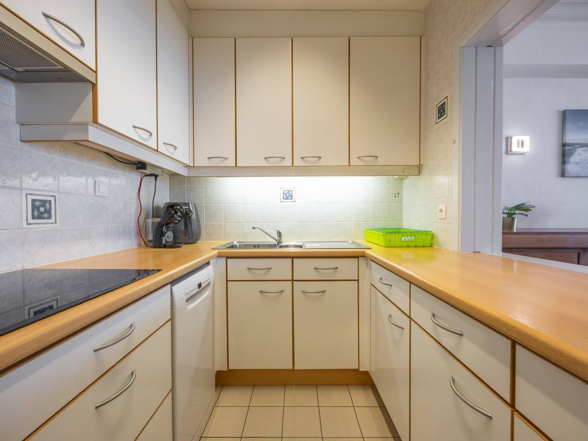 Hausbeschreibung : Wohnung im 3. Stock mit 2 Schlafzimmern: eines mit Doppelbett und eines mit 2 Einzelbetten Klappbett. Geräumiges Wohnzimmer mit Schlafsofa für 2 Personen und schönem Meerblick. Halboffene, voll ausgestattete Küche. Bad mit Dusche, separates WC und sonnige Terrasse. Gepflegt, fußläufig zum Casinoplatz, zu Geschäften, Tram und Freizeitmöglichkeiten.