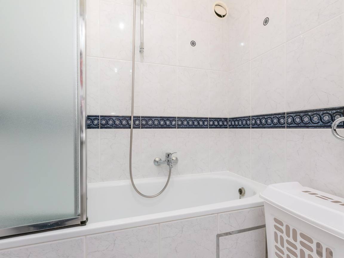 Hausbeschreibung : Geräumige und helle Wohnung im 9. Stock mit Meerblick. 2 Schlafzimmer mit Doppelbett. Wohnzimmer mit Terrasse und atemberaubendem Meerblick. Voll ausgestattete offene Küche. Beide Schlafzimmer mit Zugang zur sonnigen Terrasse hinten. Abstellraum mit Waschmaschine, Bad mit Badewanne und separates WC. Toplage nahe Geschäften, ÖV und neuem Casino.