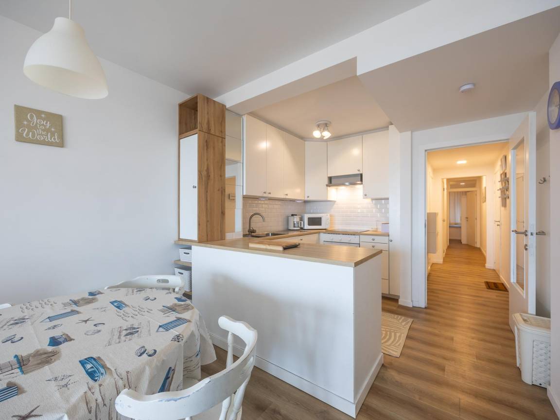 Hausbeschreibung : Genießen Sie einen unbeschwerten Urlaub in diesem gemütlichen Apartment im 1. Stock mit frontalem Meerblick, geeignet für 4 Personen. Das helle Wohnzimmer führt auf eine schöne Terrasse, die offene Küche ist voll ausgestattet. Mit 1 Schlafzimmer, Schlafnische mit Etagenbett, Bad mit Wanne/Dusche und separater Toilette. Direkt an der Promenade, nahe dem neuen Casino und fußläufig zum Zentrum.