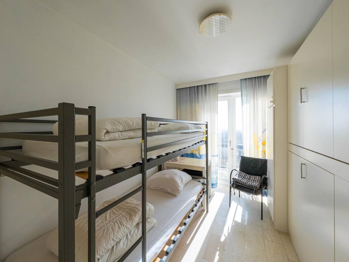 Layout : In der 4. Etage: Wohnzimmer mit TV, Esstisch, Radio , Küche mit Wasserkocher, Toaster, Kaffeemaschine(Filter), Backofen, Geschirrspüler, Kühlschrank, Kühl-/Gefrierkombination , Schlafzimmer mit Doppelbett(Doppelbettdecke, 140 x 200 cm) , Schlafzimmer mit 2x Schrankbett 1 Person(Bettdecke, 90 x 200 cm), 2x Etagenbett(Bettdecke, 90 x 200 cm) , Badezimmer mit Dusche , Badezimmer mit Badewanne , Toilette, Abstellraum