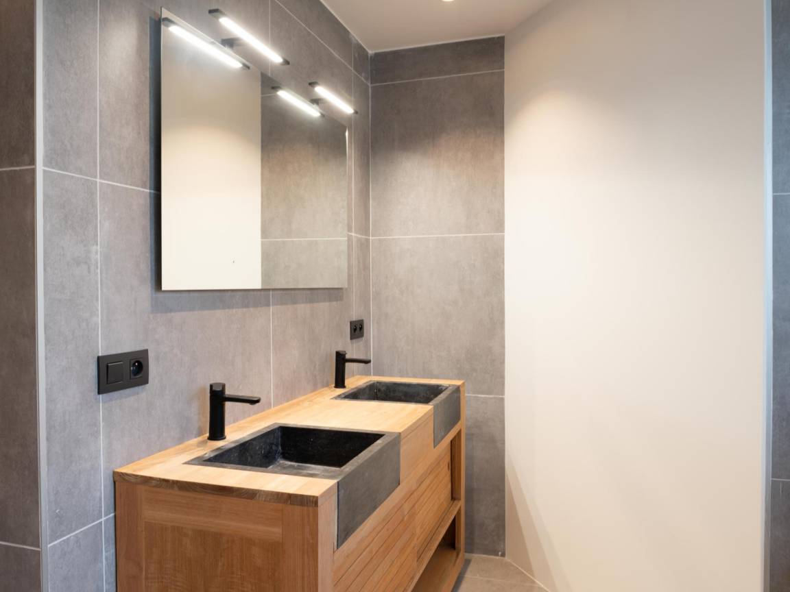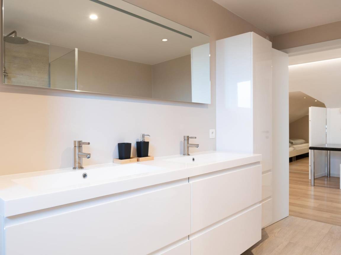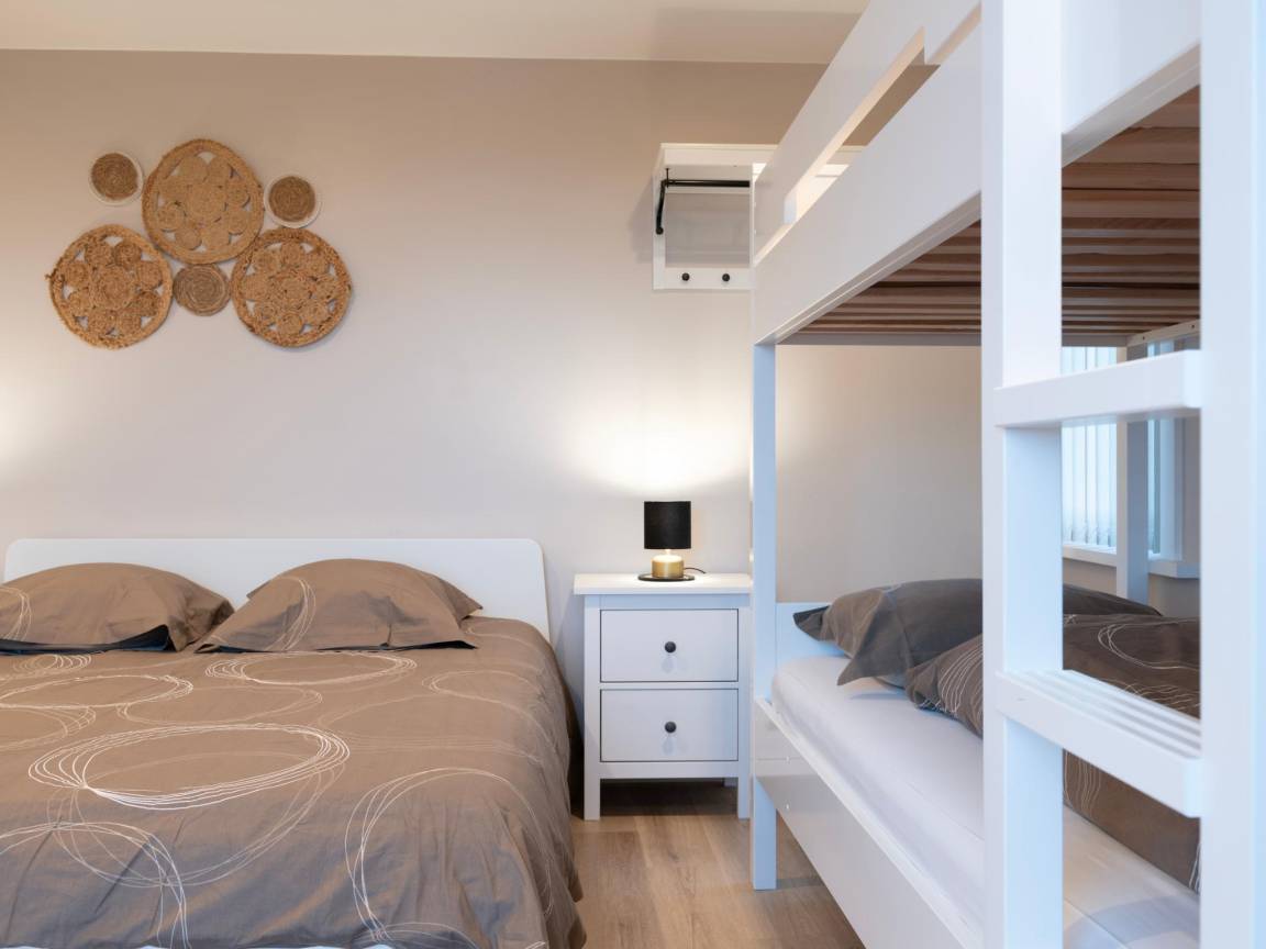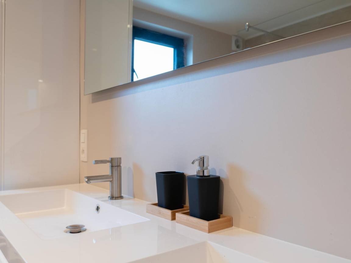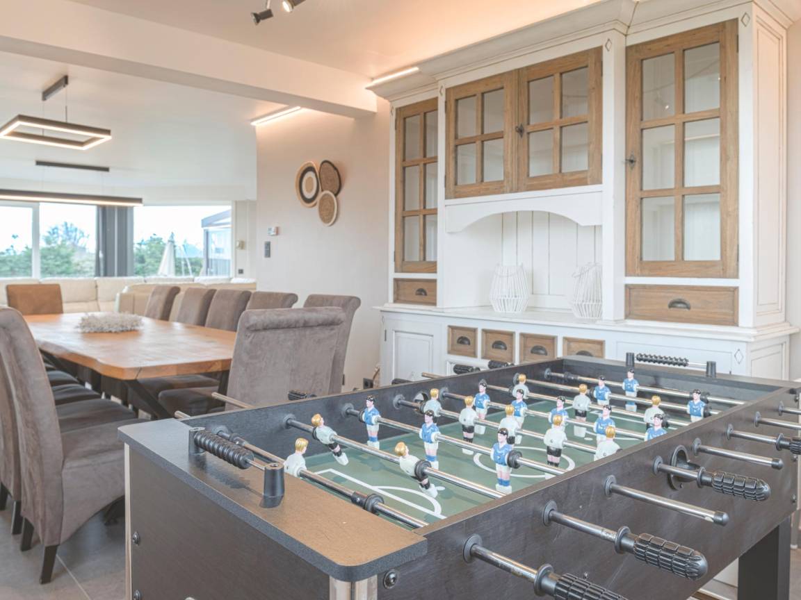 In der 1. Etage: Schlafzimmer mit Doppelbett(160 x 200 cm), Etagenbett , Schlafzimmer mit Einzelbett, Doppelbett(160 x 200 cm) , Schlafzimmer mit Badezimmer mit Doppelbett(180 x 200 cm), Dusche, Waschbecken, Toilette, Terrasse , Schlafzimmer mit Badezimmer mit Doppelbett(160 x 200 cm), Etagenbett(90 x 200 cm), Dusche, 2x Waschbecken, Toilette, Terrasse , Badezimmer mit Dusche, 2x Waschbecken, Toilette , Flur mit Toilette , Ruheraum mit Spielkonsole