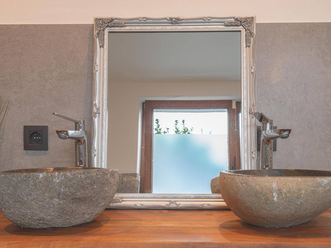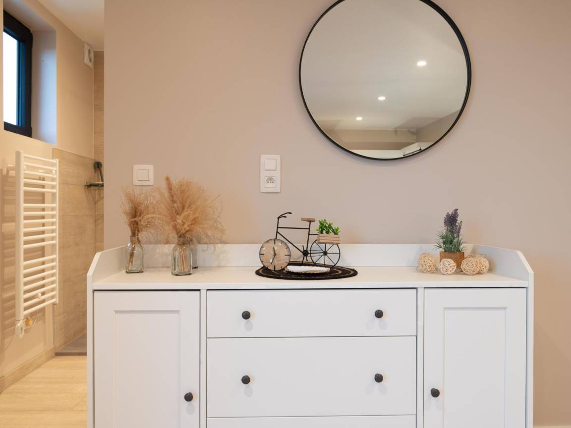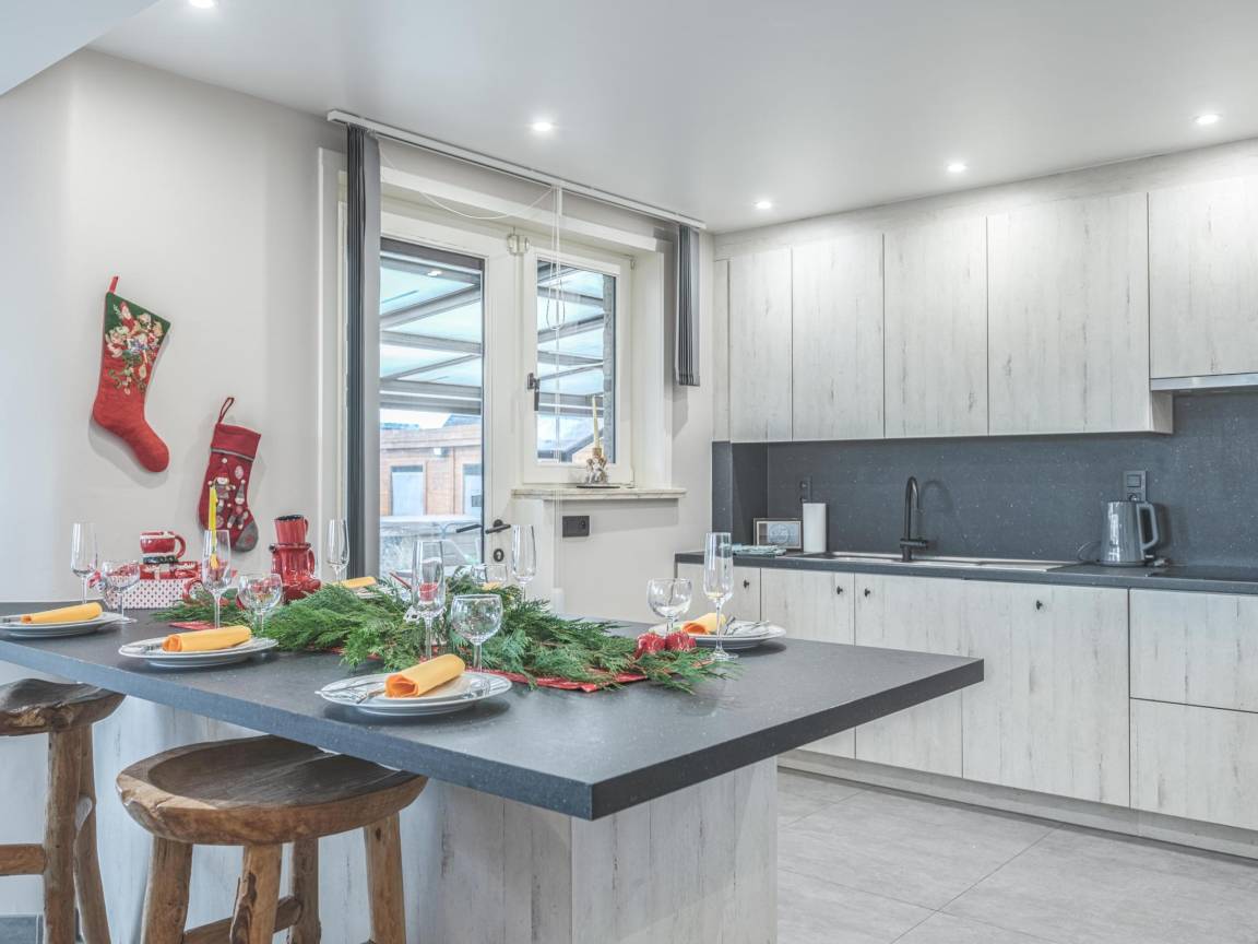 „Das Haus war sehr funktional und praktisch für eine große Familie, die von den Großeltern bis zu den Enkelkindern reichte. Die Zimmer waren mehr als ausreichend, der Jacuzzi hatte seinen Erfolg. Wir hatten viel Platz. Der Speisesaal war groß genug, um uns alle aufzunehmen, auch wenn man sich ein wenig abstoßen musste, um durchzukommen. Einziges Manko: Die Zimmerpflanzen sind alle aus Plastik... und der Außenrasen hinten (wo sich der Terrassentisch, der Whirlpool, die Sauna usw. befinden) ist ebenfalls ziemlich schlecht platzierter Kunstrasen, was den Gesamteindruck ein wenig trübt. Alles in allem war es ein schönes Wochenende.“