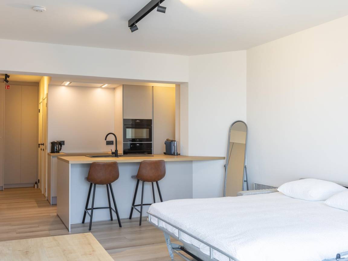 Hausbeschreibung : Studio im 3. Stock mit Schlafnische und Schlafsofa für 2 Personen. Gemütliches Wohnzimmer mit offener, voll ausgestatteter Küche und Kochinsel. Vom Sitzbereich oder Balkon aus genießen Sie herrlichen Meerblick und Sicht auf das neue Casino. Luxusbad mit Walk-in-Dusche und separates WC. Zentrale Lage nahe Geschäften, Tram, Casino, Promenade und Strand.