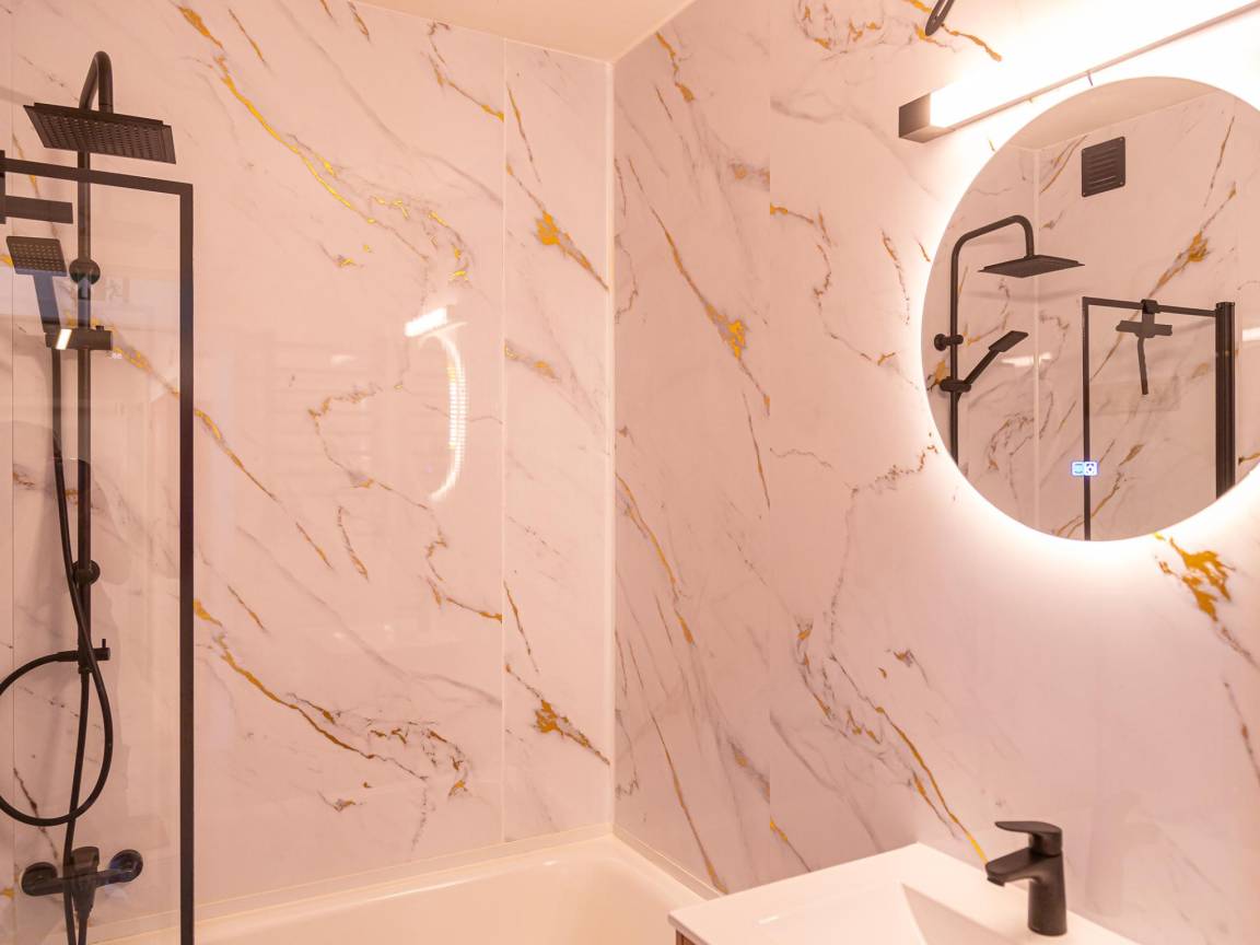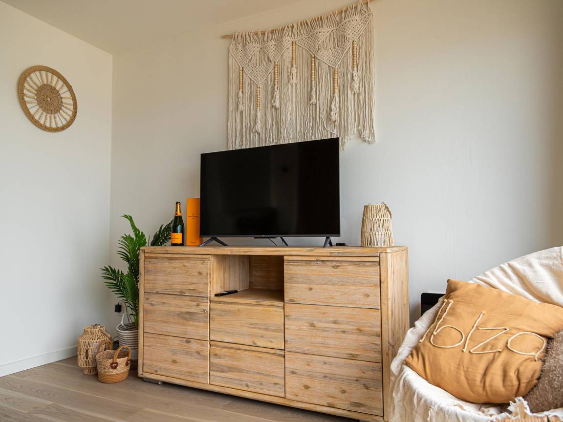 Hausbeschreibung : Apartment im 9. Stock, ideal für einen stilvollen Urlaub mit Panoramameerblick. Kürzlich renoviert und im trendigen Boho-Stil eingerichtet. Ein Schlafzimmer mit komfortablem Doppelbett. Gemütliches Wohnzimmer über die gesamte Breite mit raumhohen Fenstern und voll ausgestatteter offener Küche. Badezimmer mit Badewanne. Kleiner Balkon angrenzend an das Schlafzimmer. Zentrale Lage nahe Geschäften.