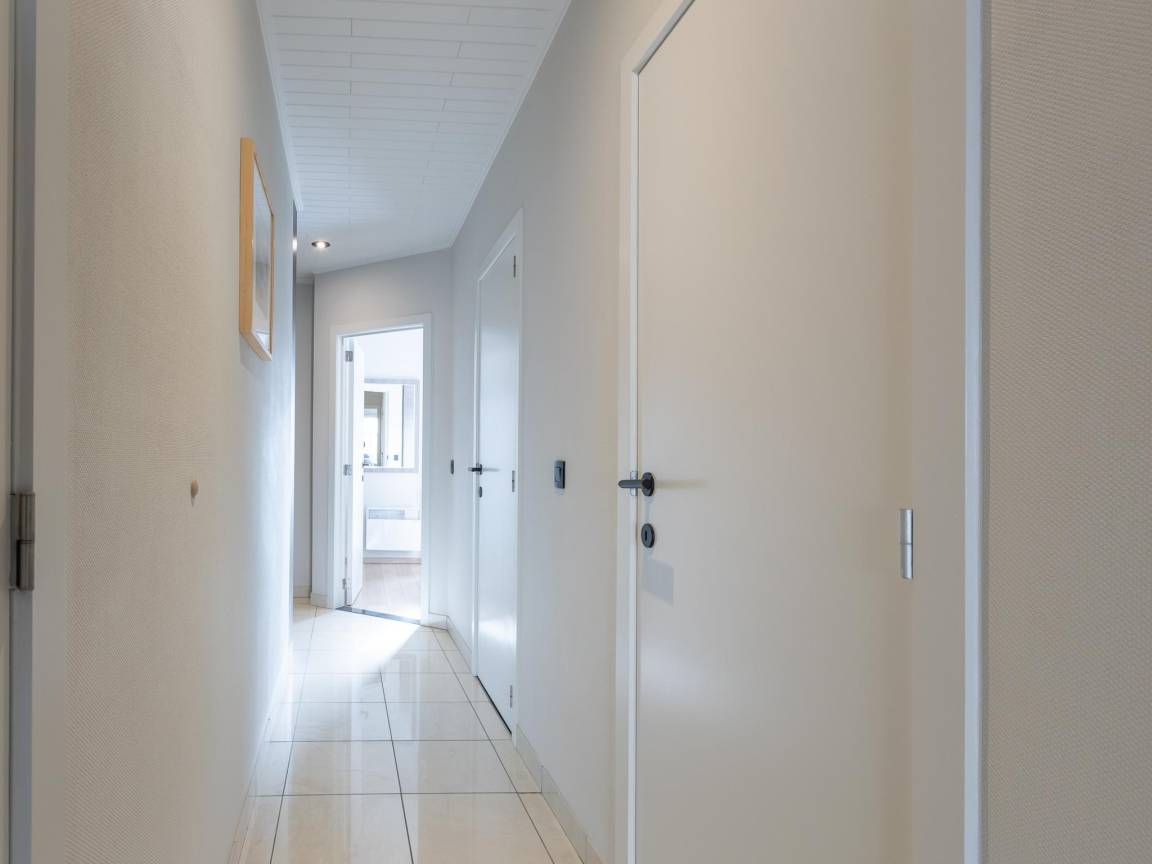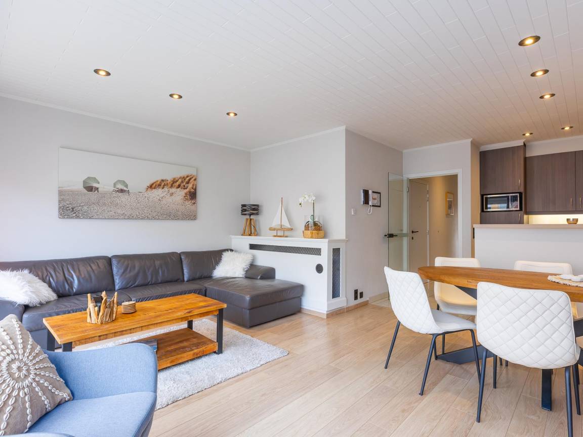 Hausbeschreibung : Apartment im 4. Stock mit 2 Schlafzimmern, beide mit Doppelbett. Helles Wohnzimmer mit raumhohen Fenstern und sonniger Terrasse mit Blick auf die Leopoldlaan. Offene, voll ausgestattete Küche, modernes Duschbad, separates WC und kleiner Abstellraum. Hinten eine weitere sonnige Terrasse. Toplage nahe Strand, Promenade, Geschäften und Restaurants. Zwei Fahrradhalterungen im Keller verfügbar.