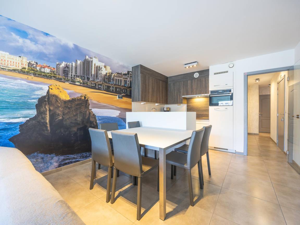 Hausbeschreibung : Apartment im 7. Stock mit 2 Schlafzimmern (1 Doppelbett, 1 Etagenbett), ideal für Familien oder kleine Gruppen. Geräumiges, geschmackvoll eingerichtetes Wohnzimmer mit Terrasse, offene voll ausgestattete Küche, Bad mit Wanne und separates WC. Moderne Residenz in zentraler Lage, nahe öffentlicher Verkehrsmittel, Promenade, Geschäften und allen Annehmlichkeiten.